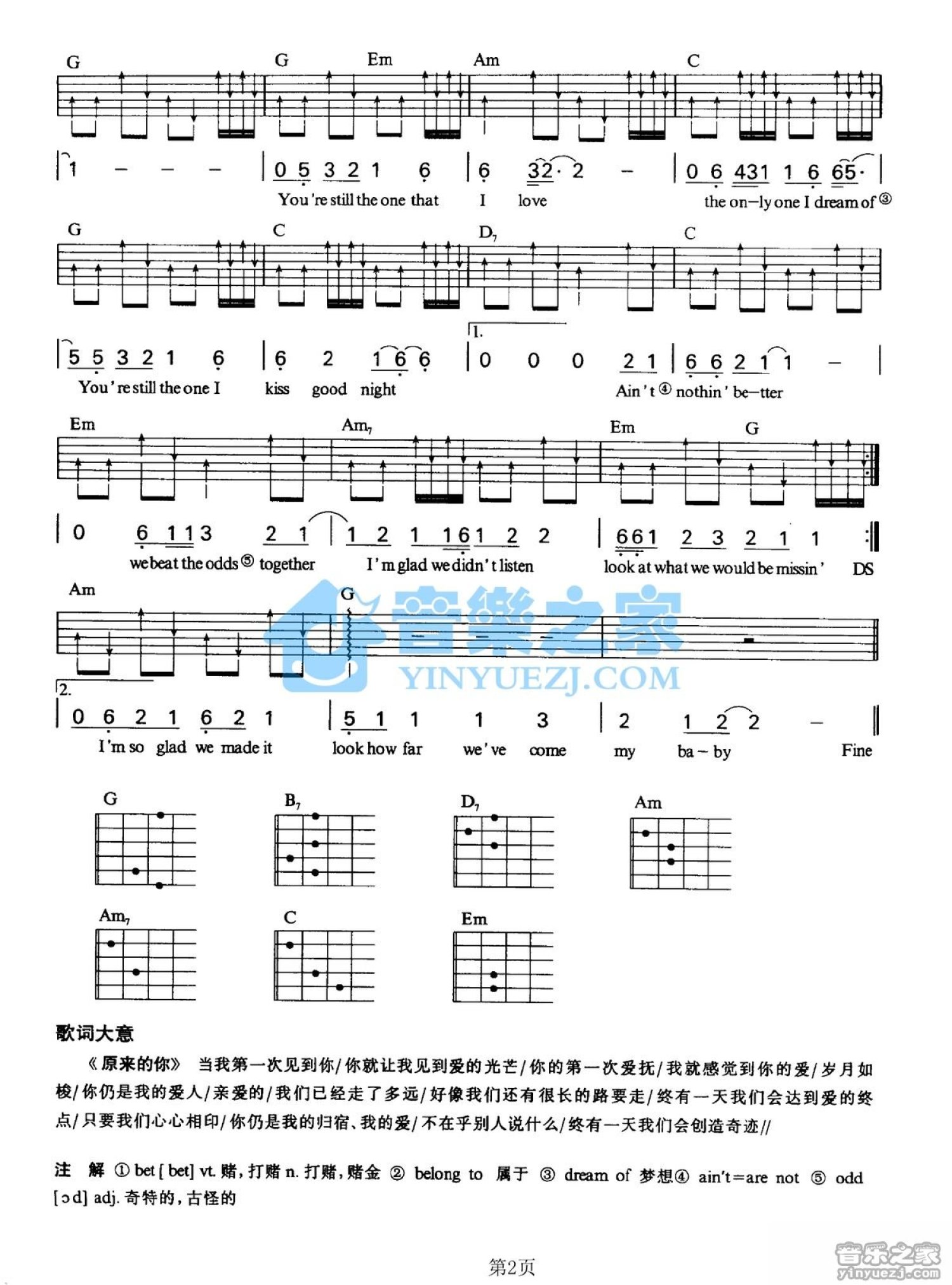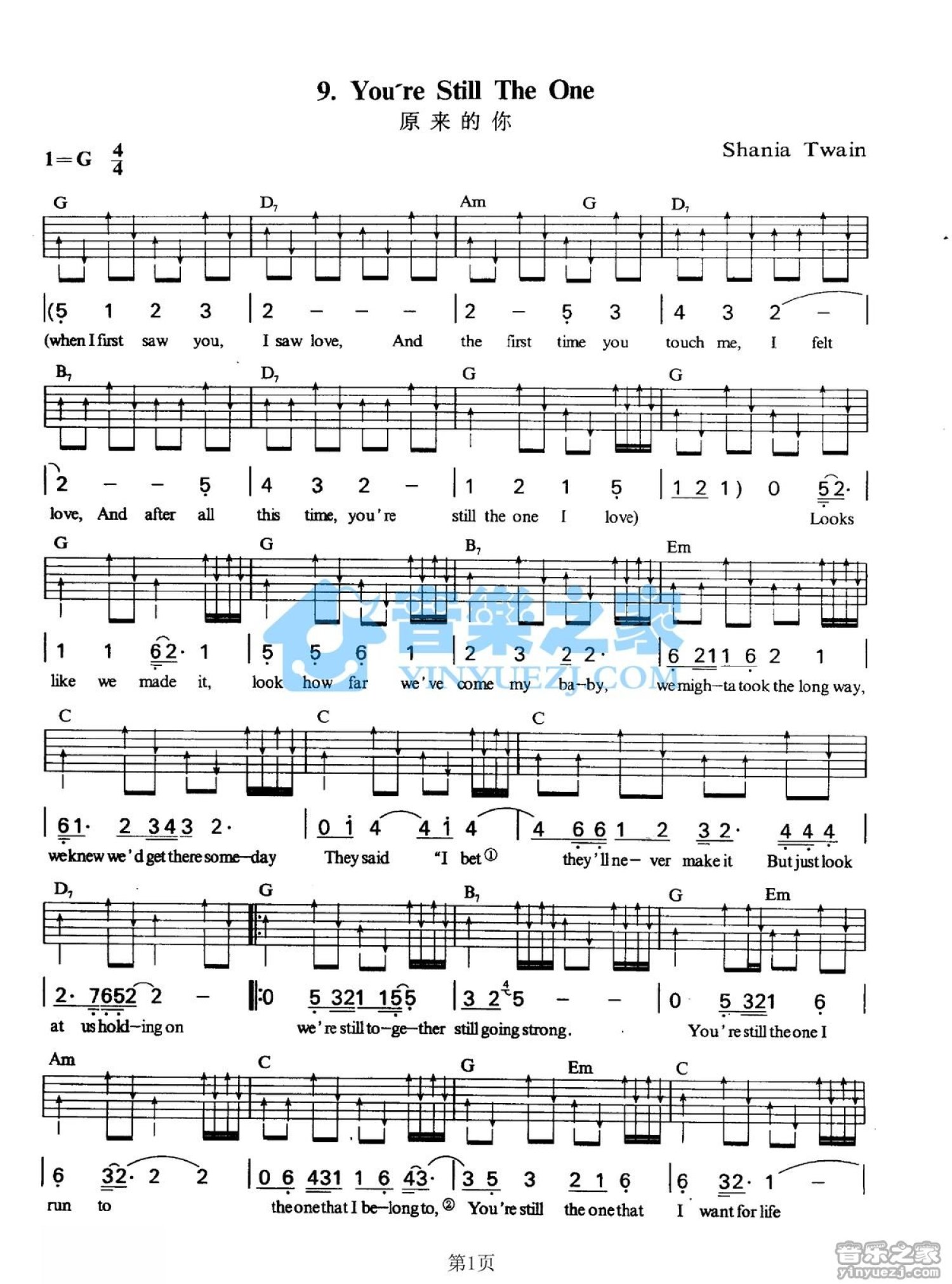 曲谱介绍: G调版ShaniaTwain《You'reStillTheOne》吉他弹唱六线谱