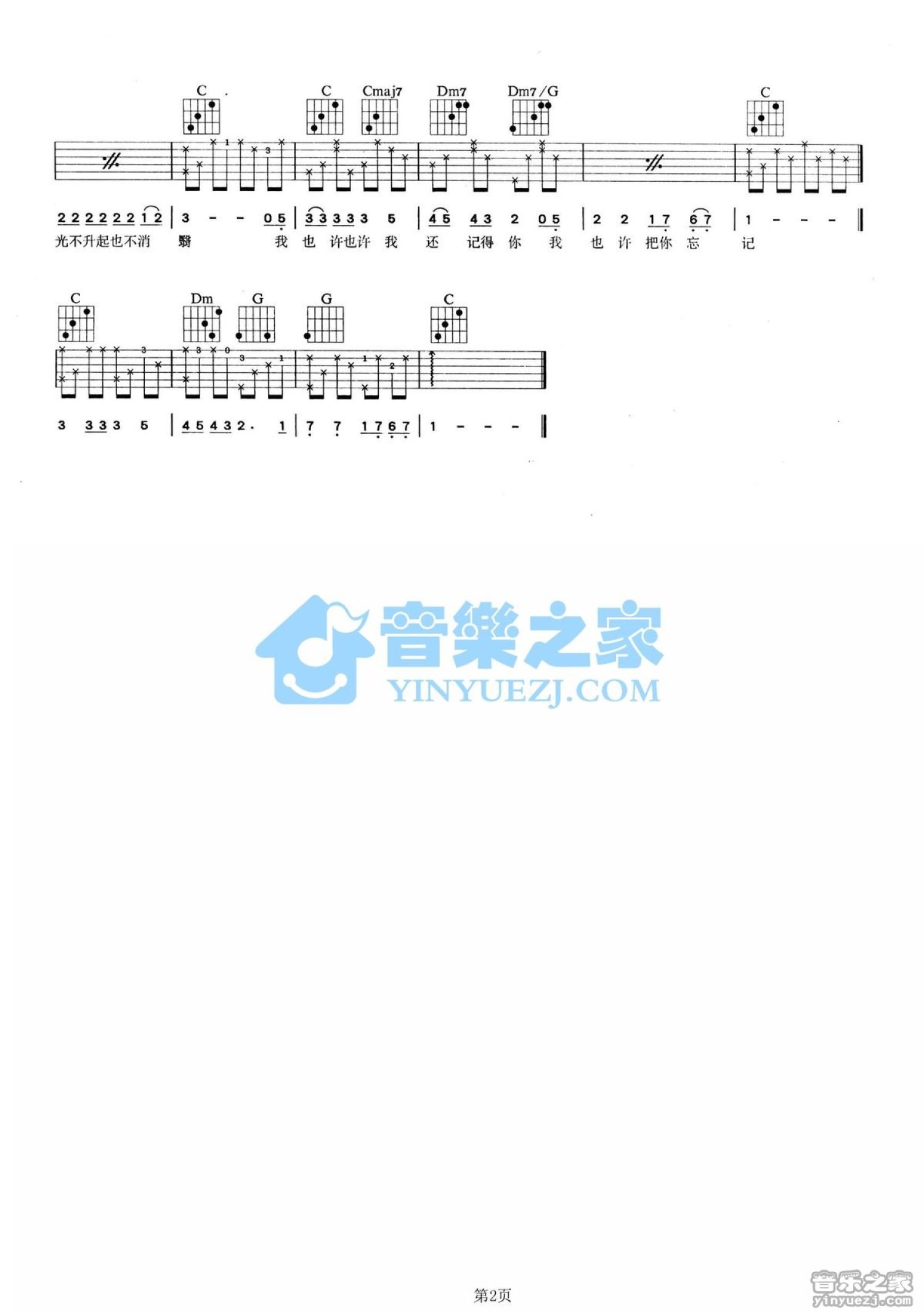 曲谱介绍: C调版张艾嘉《歌》吉他弹唱六线谱