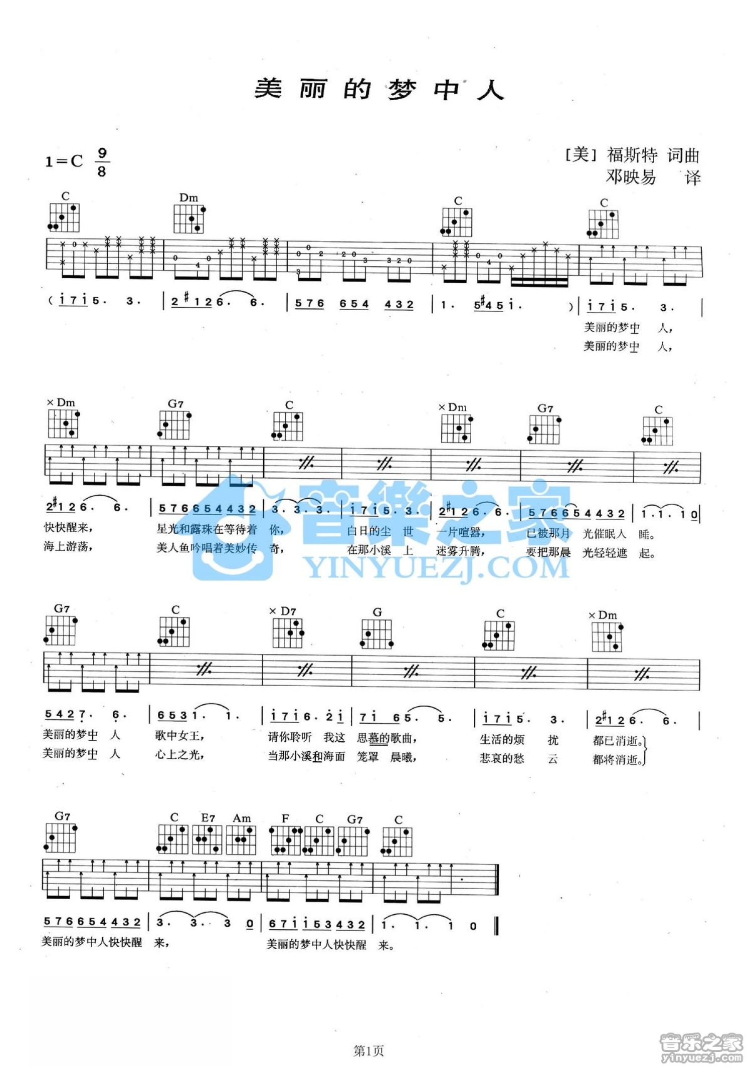 美丽的梦中情人吉他谱 - 民谣 - C调吉他弹唱谱