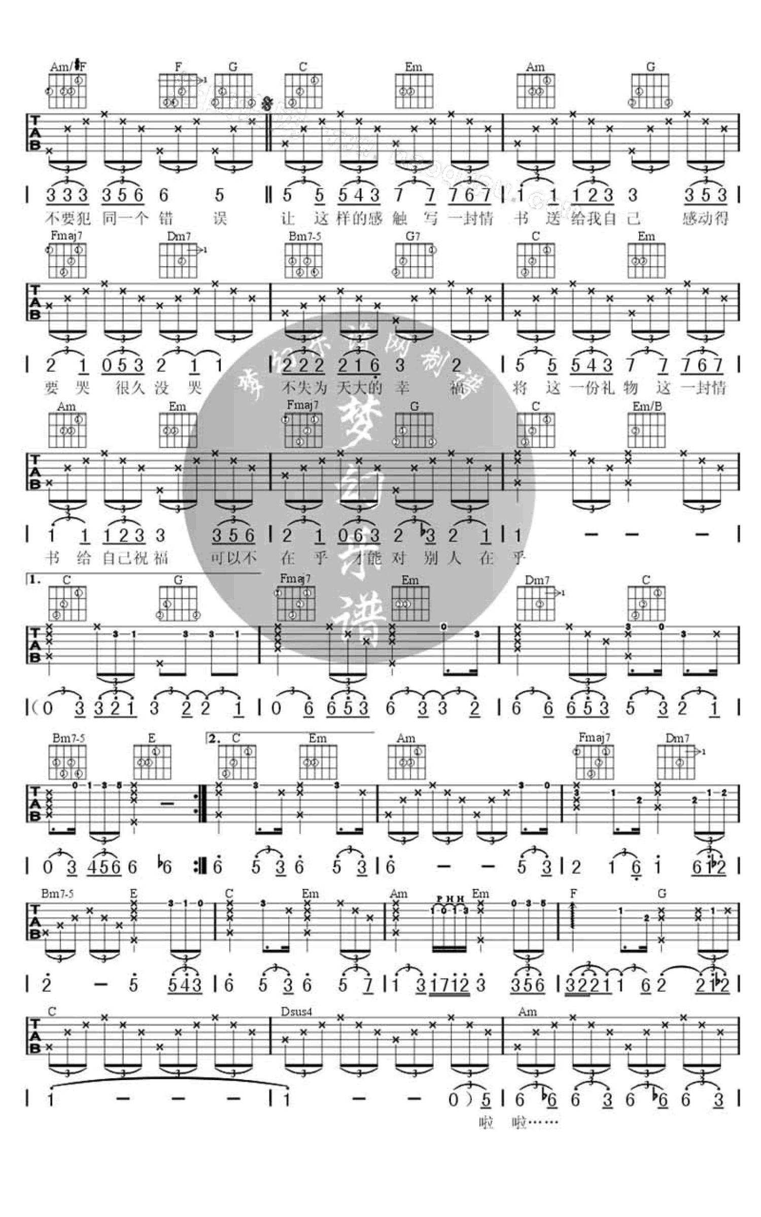 吉他弹唱C调来源:JTB4600 浏览2018-03-19 13:34发布图谱共3页