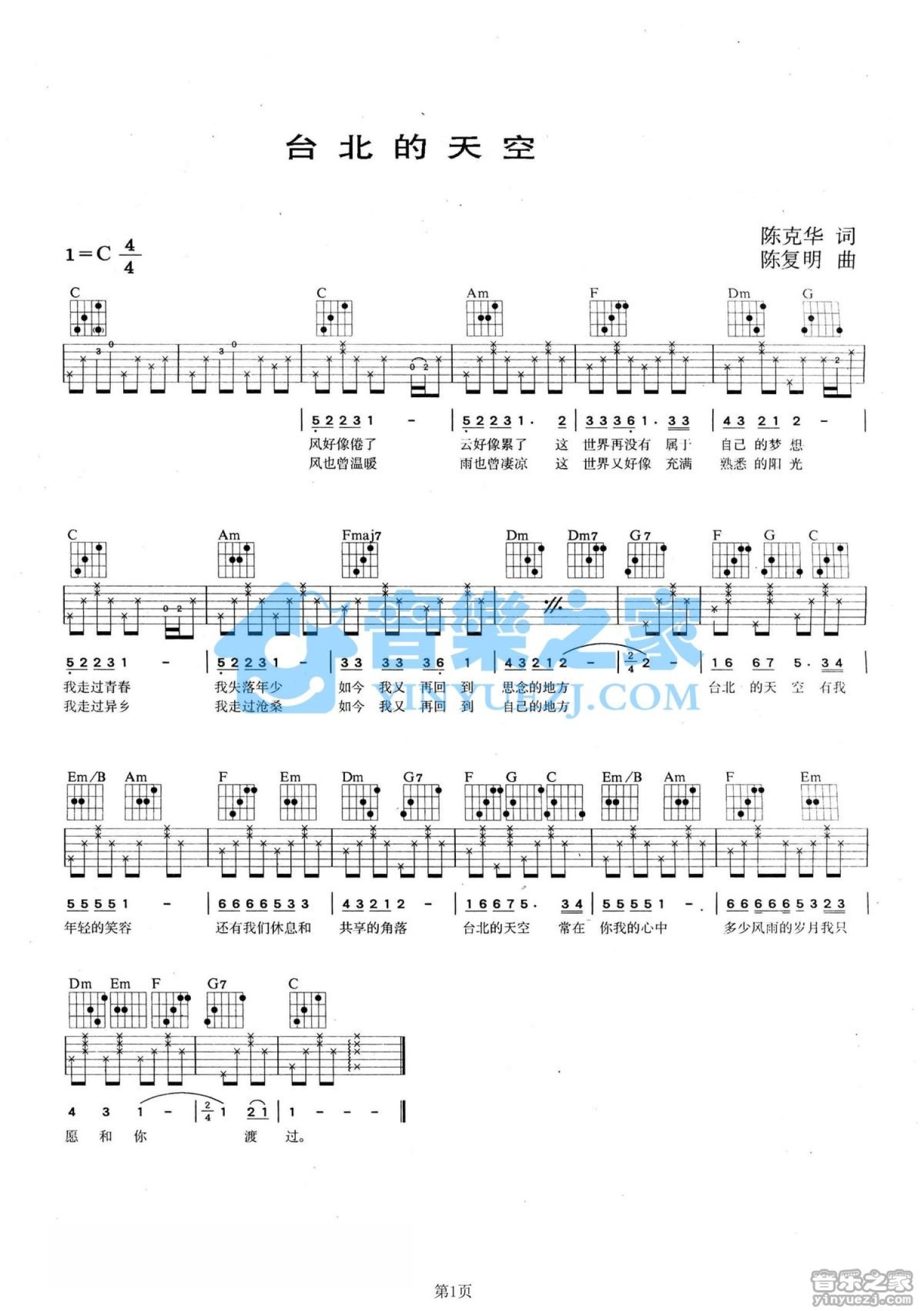 当前位置:琴谱网>吉他弹唱>台北的天空