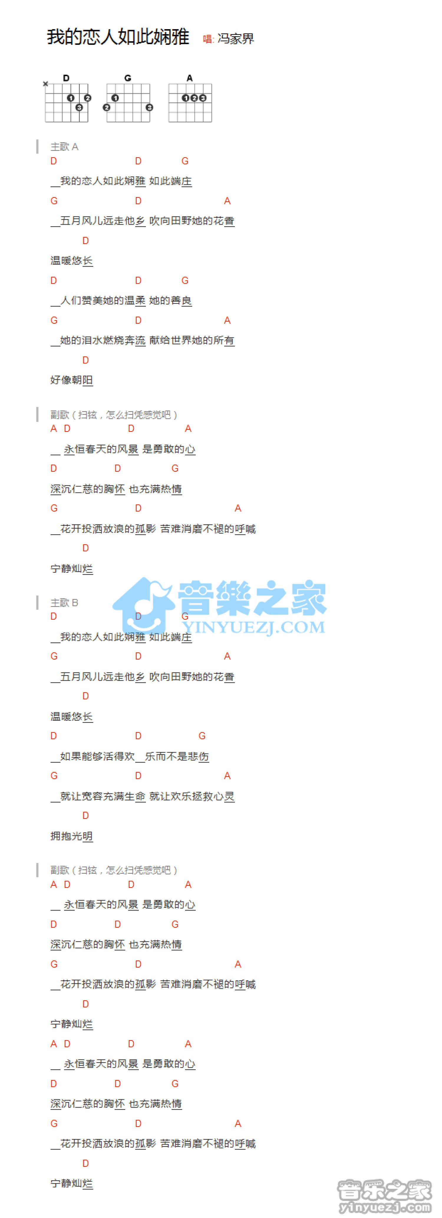 我的恋人如此娴雅吉他谱 - 冯家界 - D调吉他弹唱谱 - 和弦谱