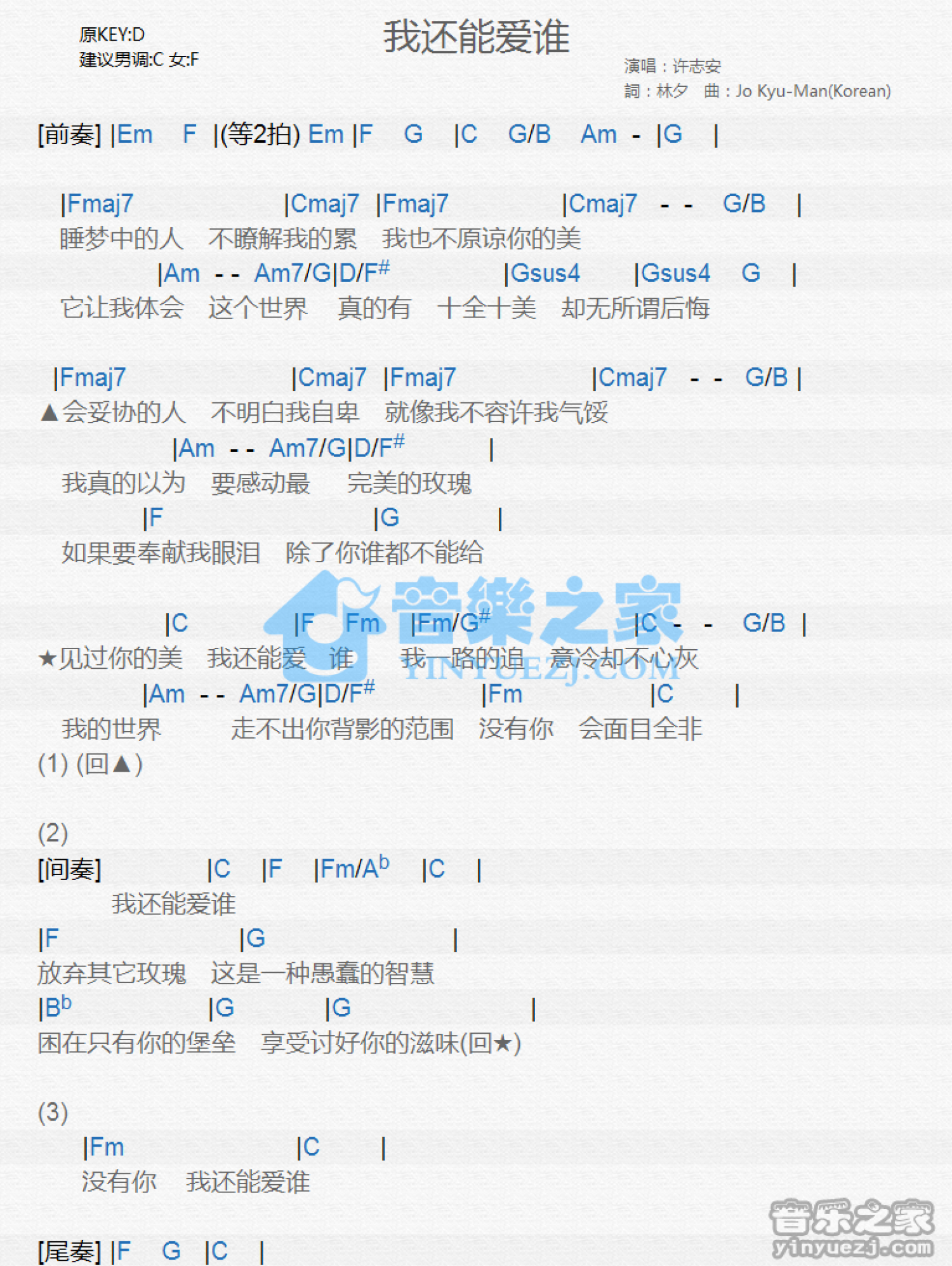 当前位置:琴谱网>吉他弹唱>我还能爱谁