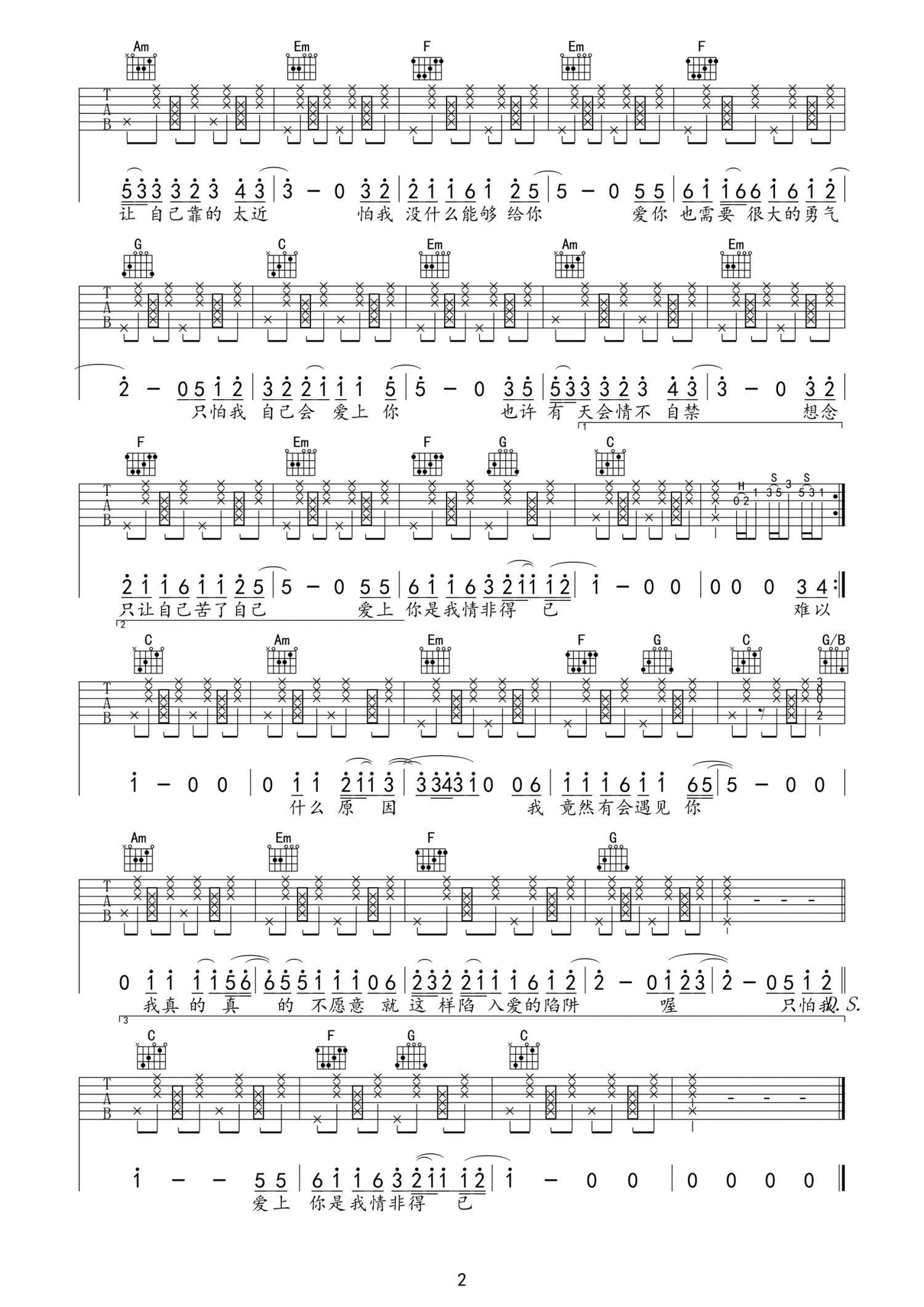 曲谱介绍: 情非得已吉他谱 庾澄庆 C调击弦版高清弹唱谱