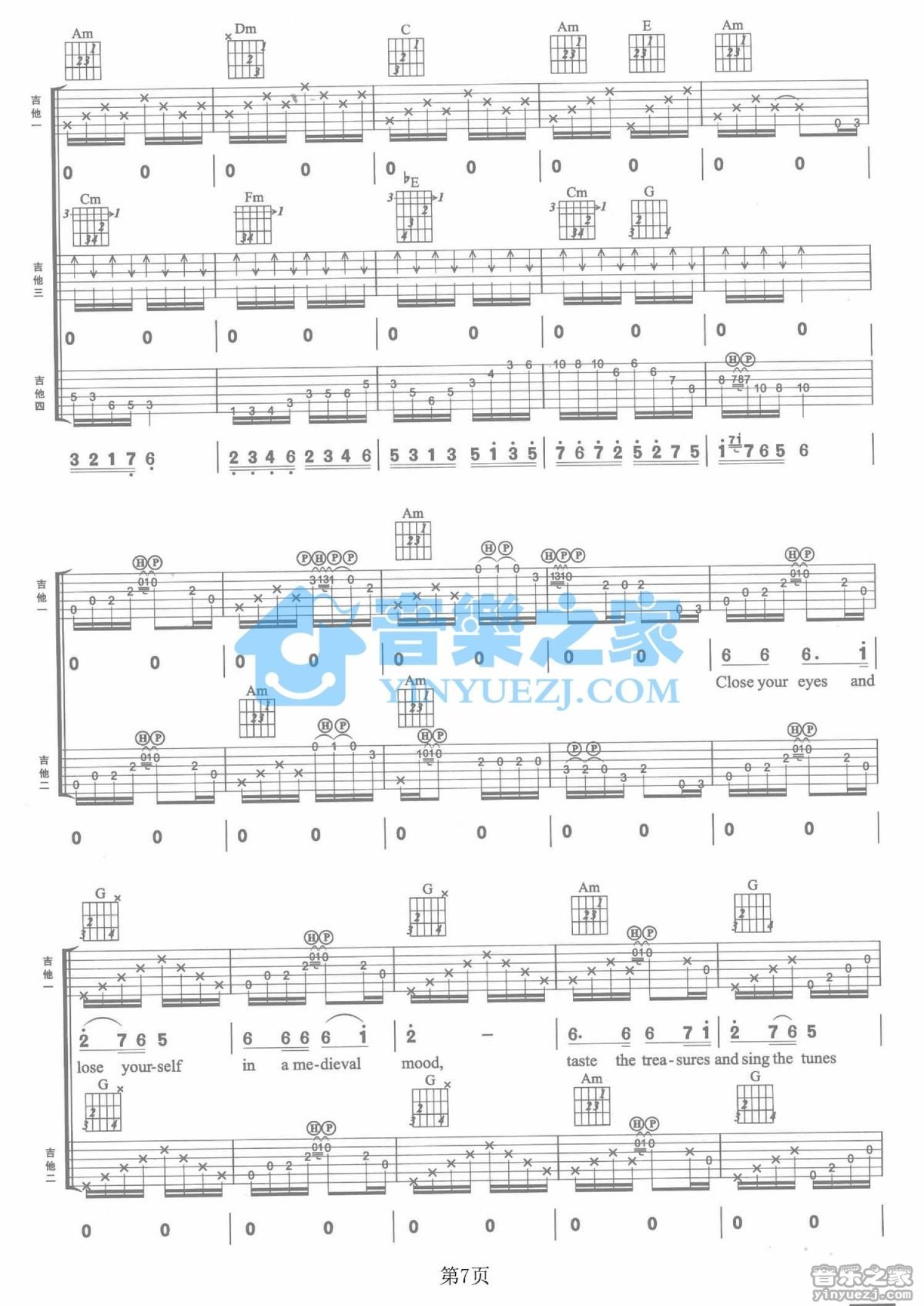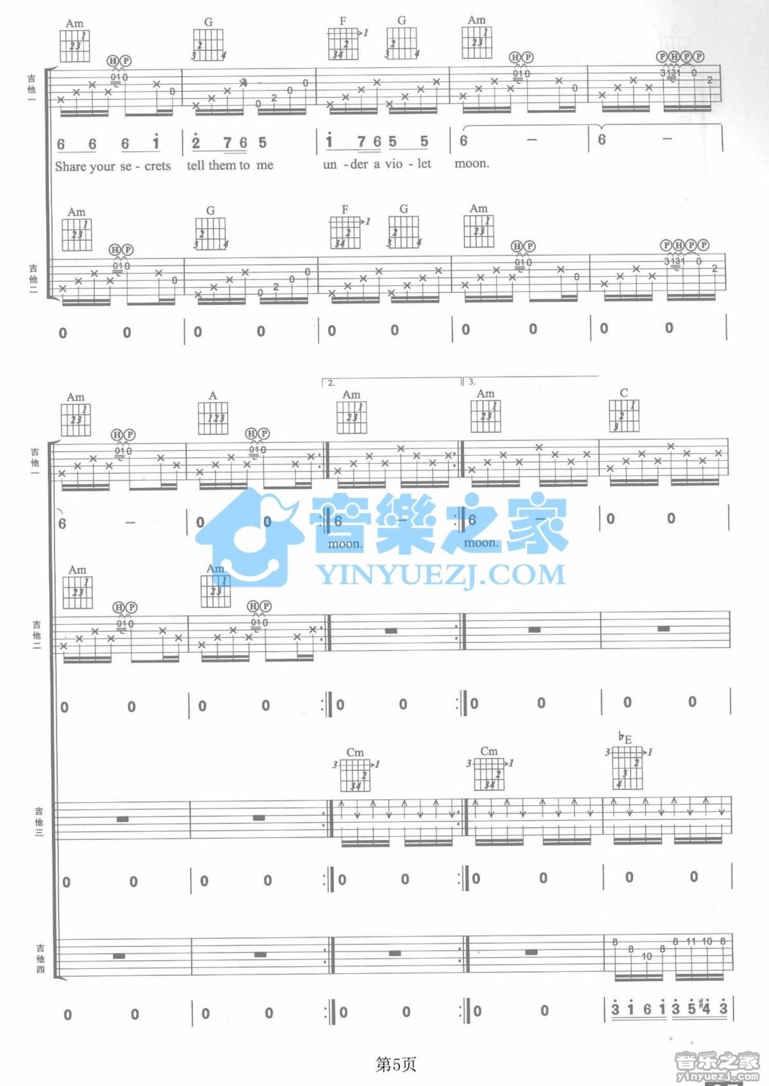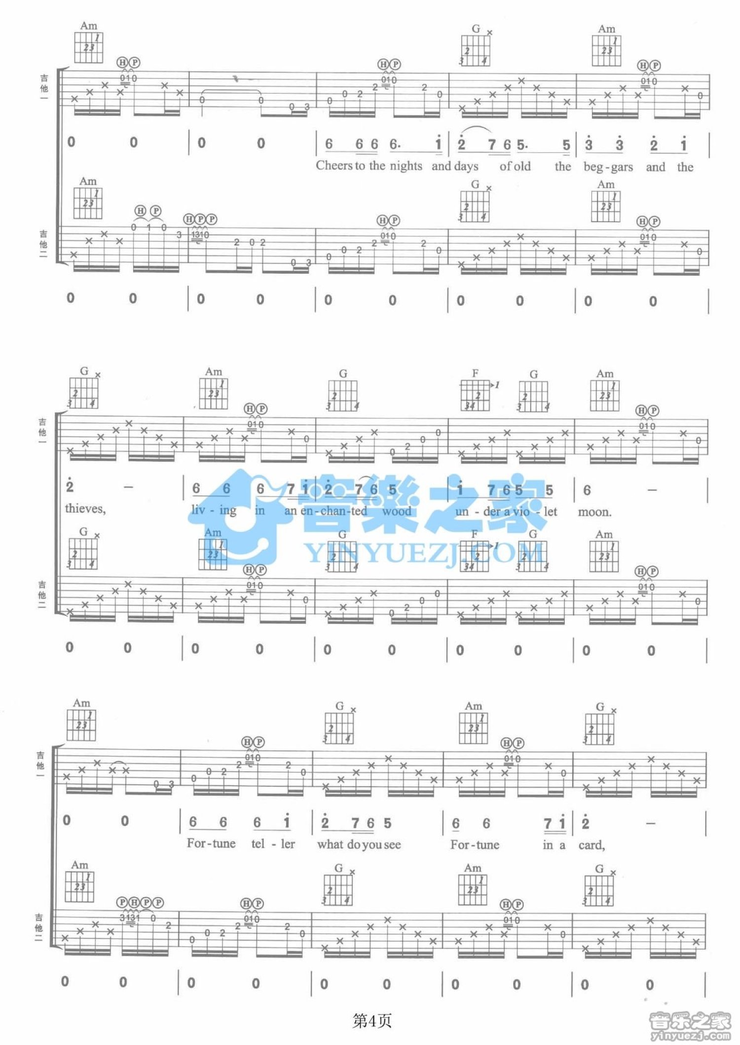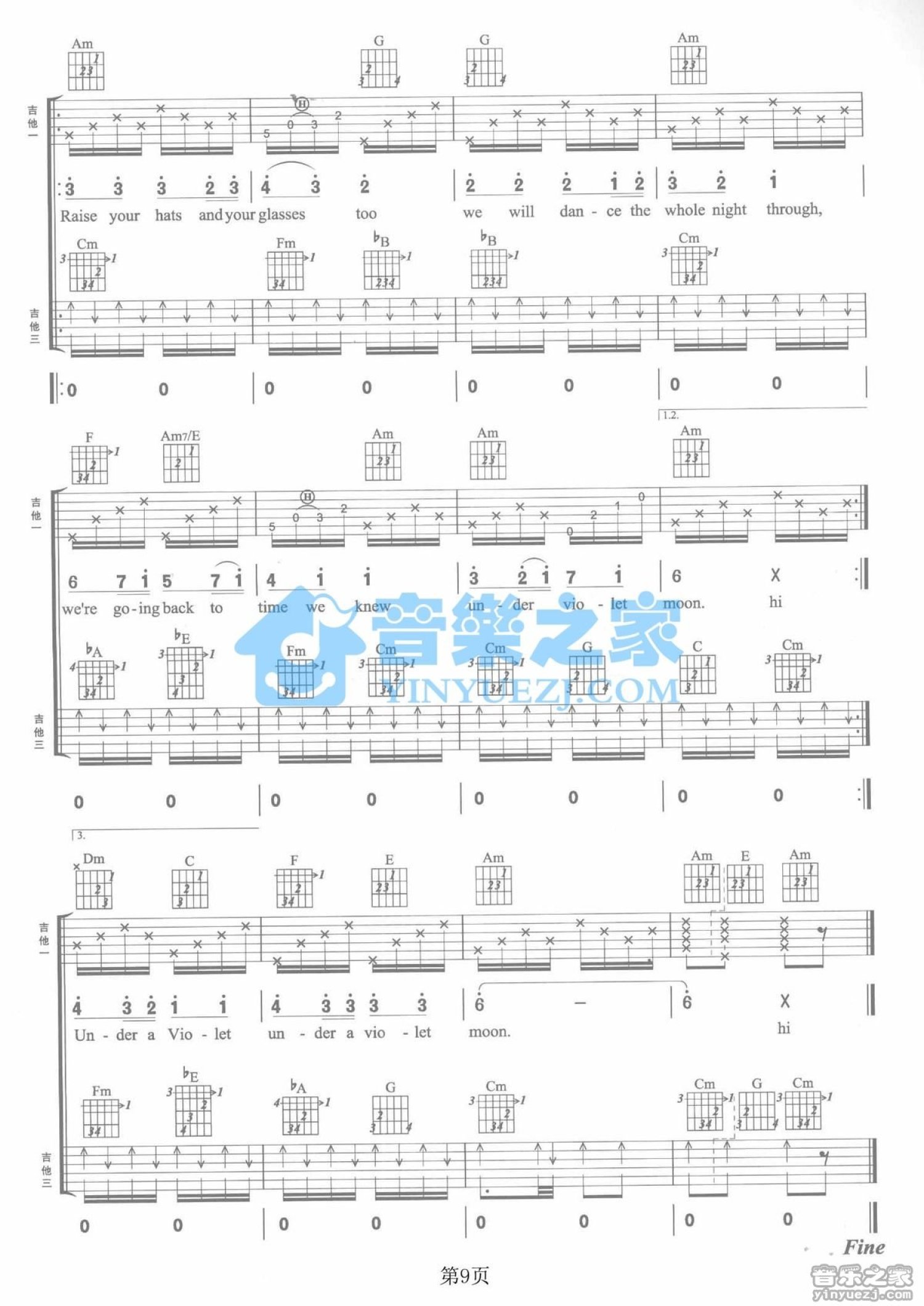 曲谱介绍: C调双吉他版Blackmore'sNight《UnderaVioletMoon》吉他弹唱六线谱
