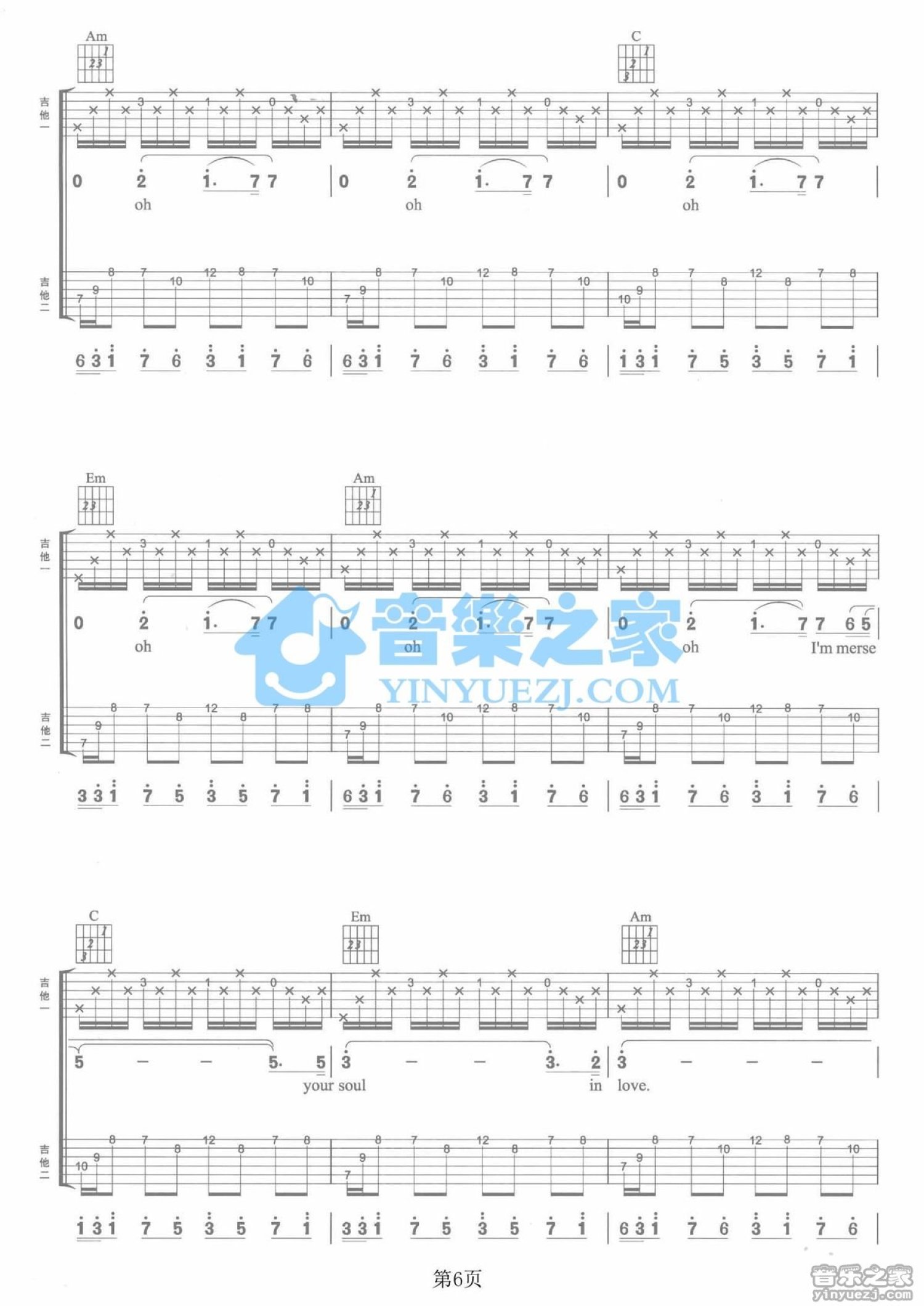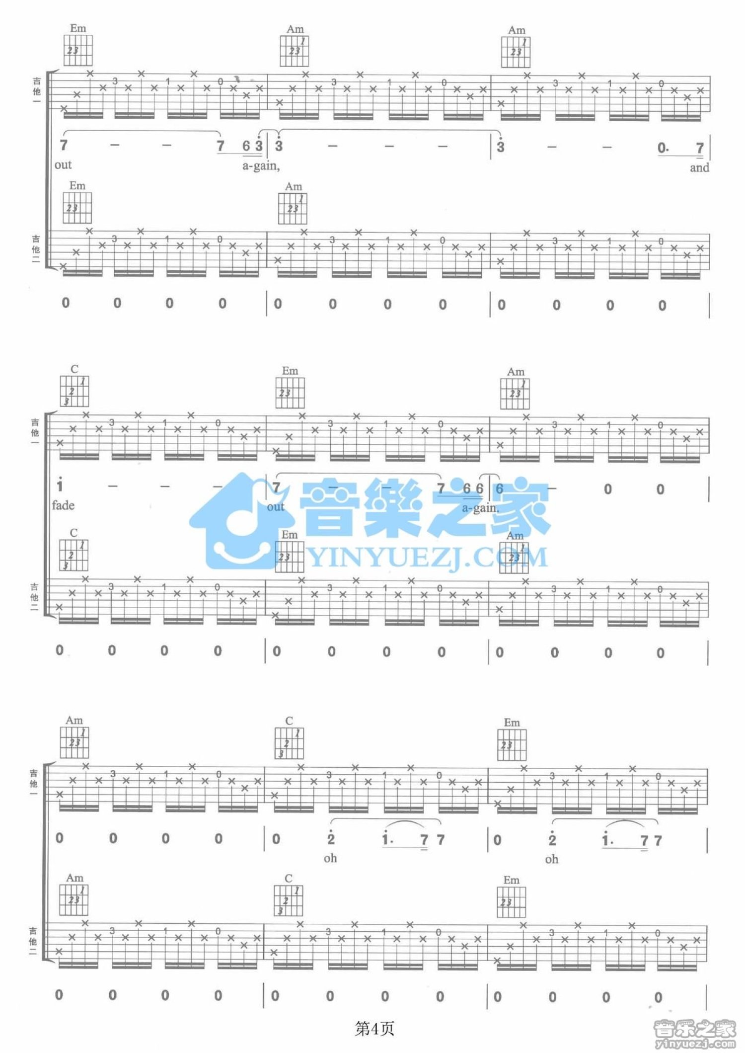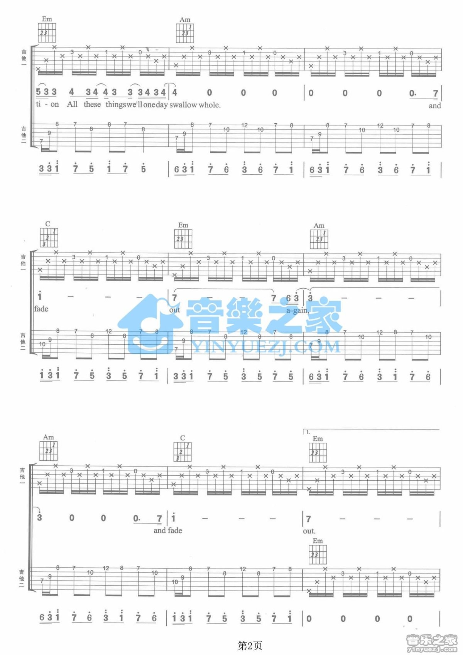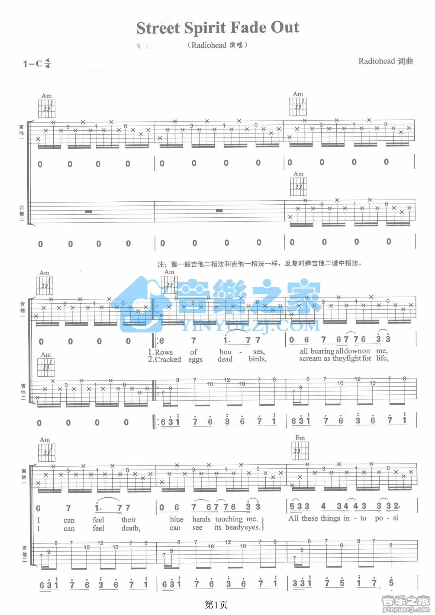 曲谱介绍: C调双吉他版Radiohead《StreetSpirit》吉他弹唱六线谱