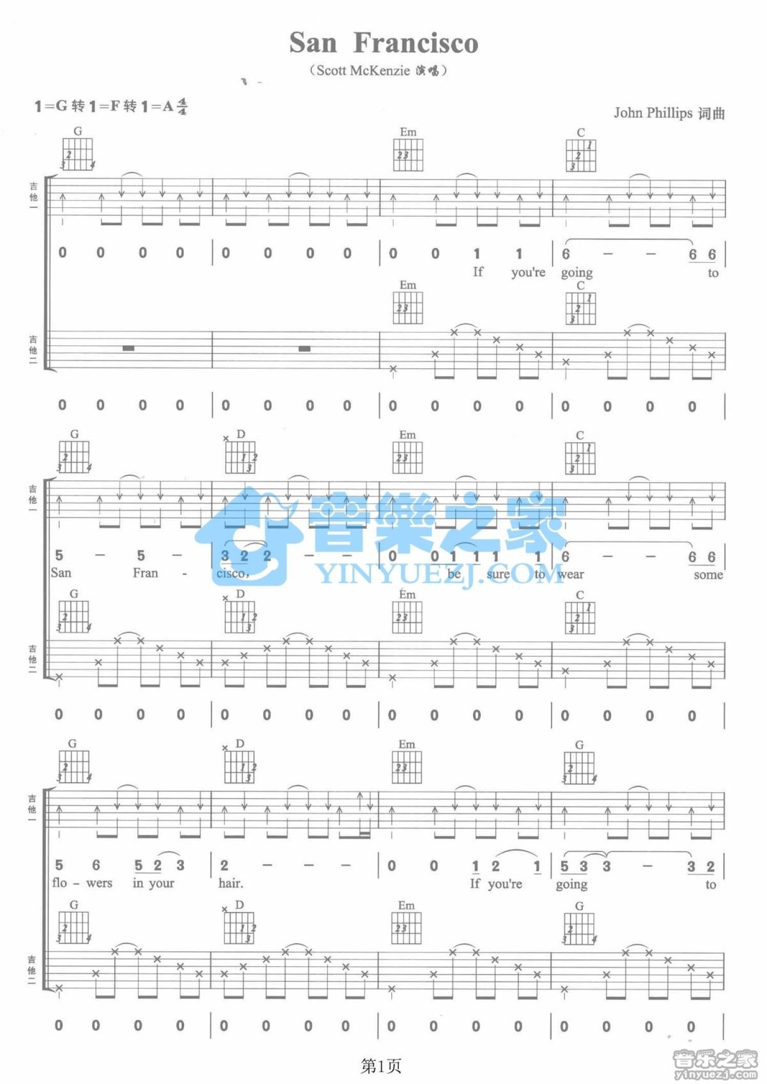 当前位置:琴谱网>吉他弹唱>San Francisico