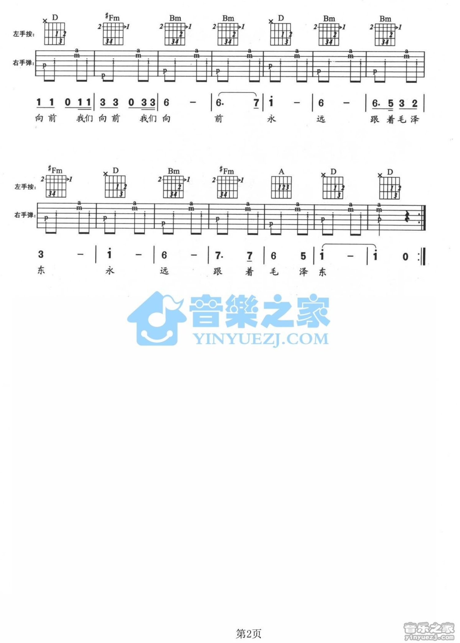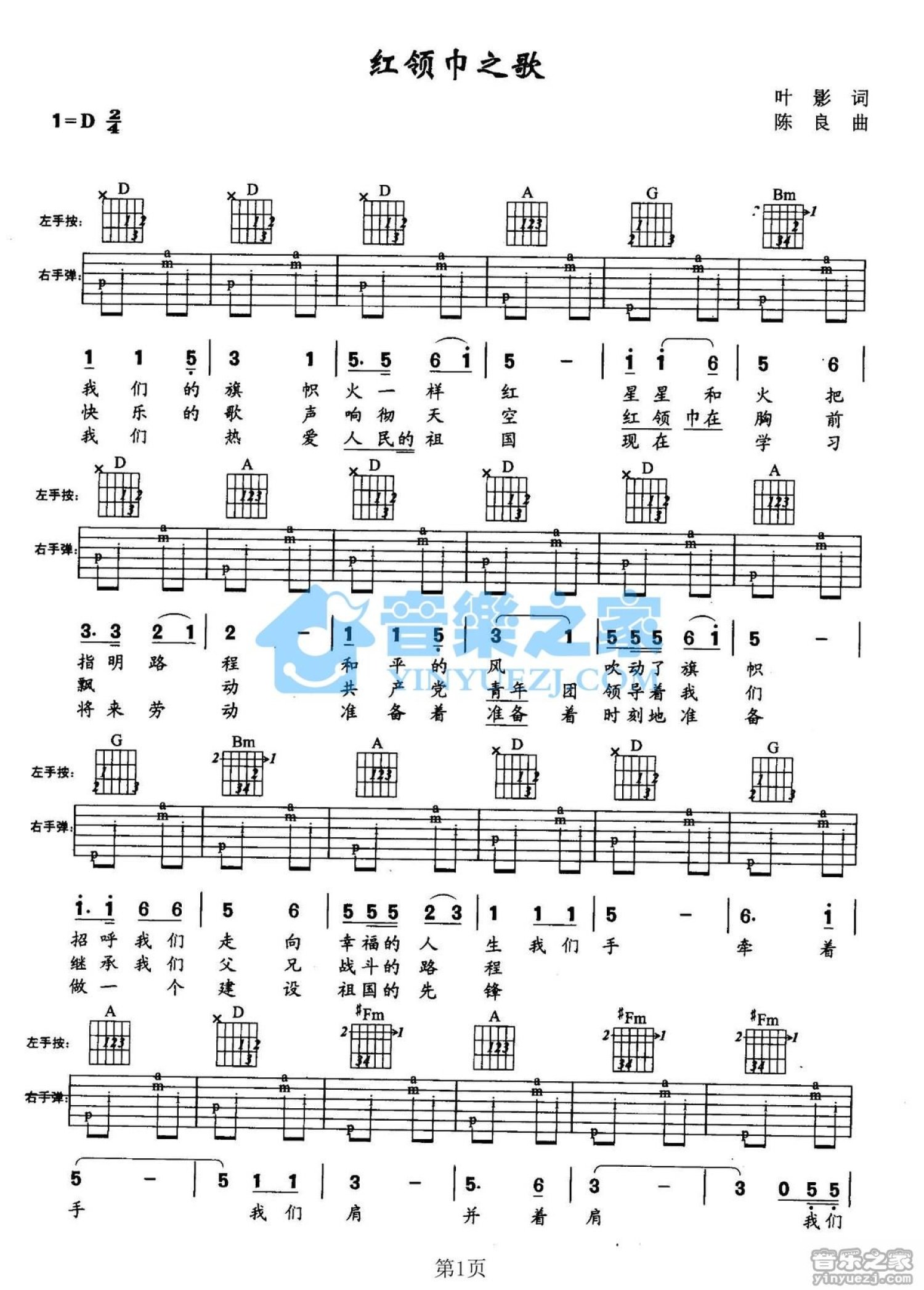 曲谱介绍: D调版儿歌《红领巾之歌》吉他弹唱六线谱