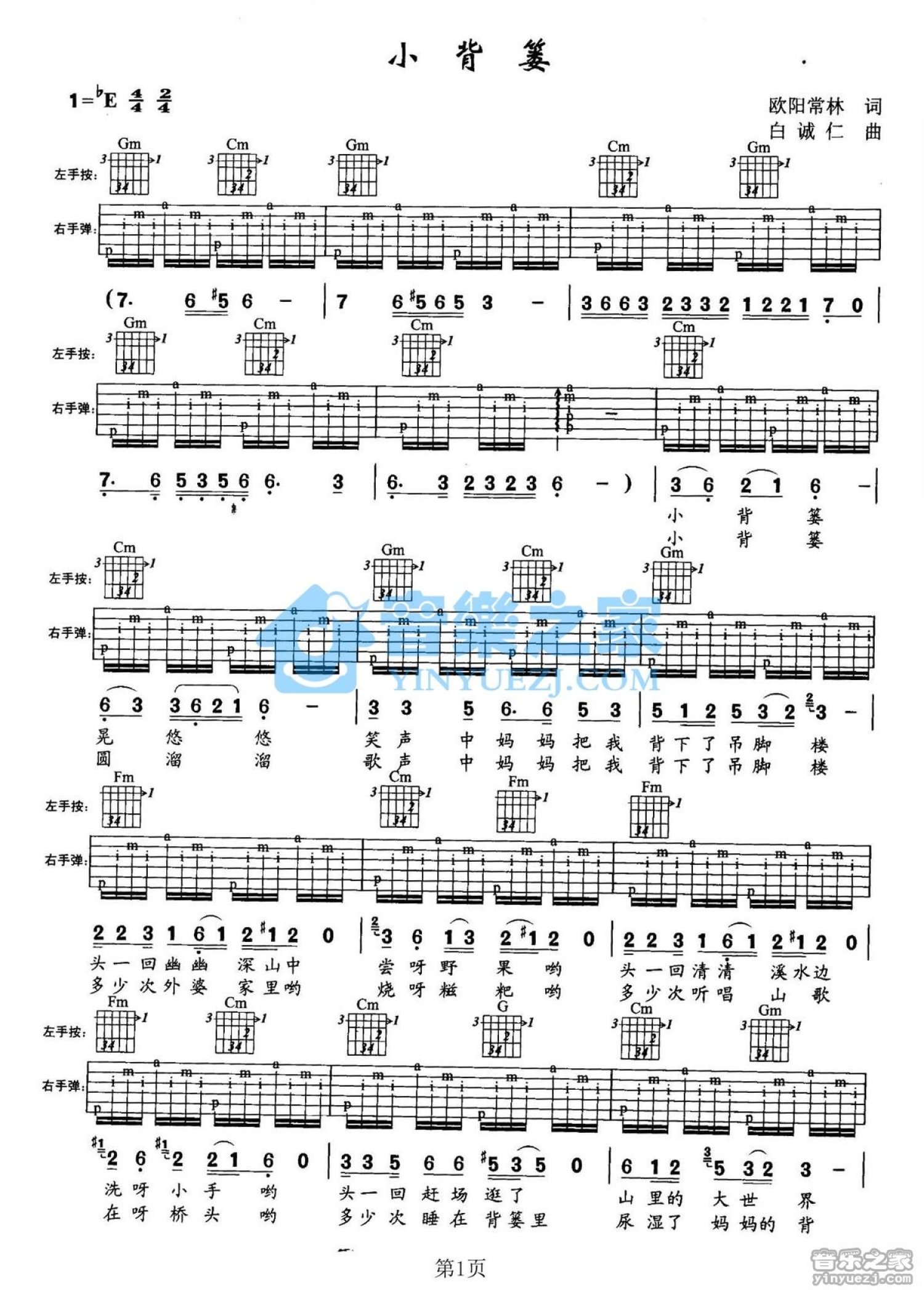当前位置:琴谱网>吉他弹唱>小背篓