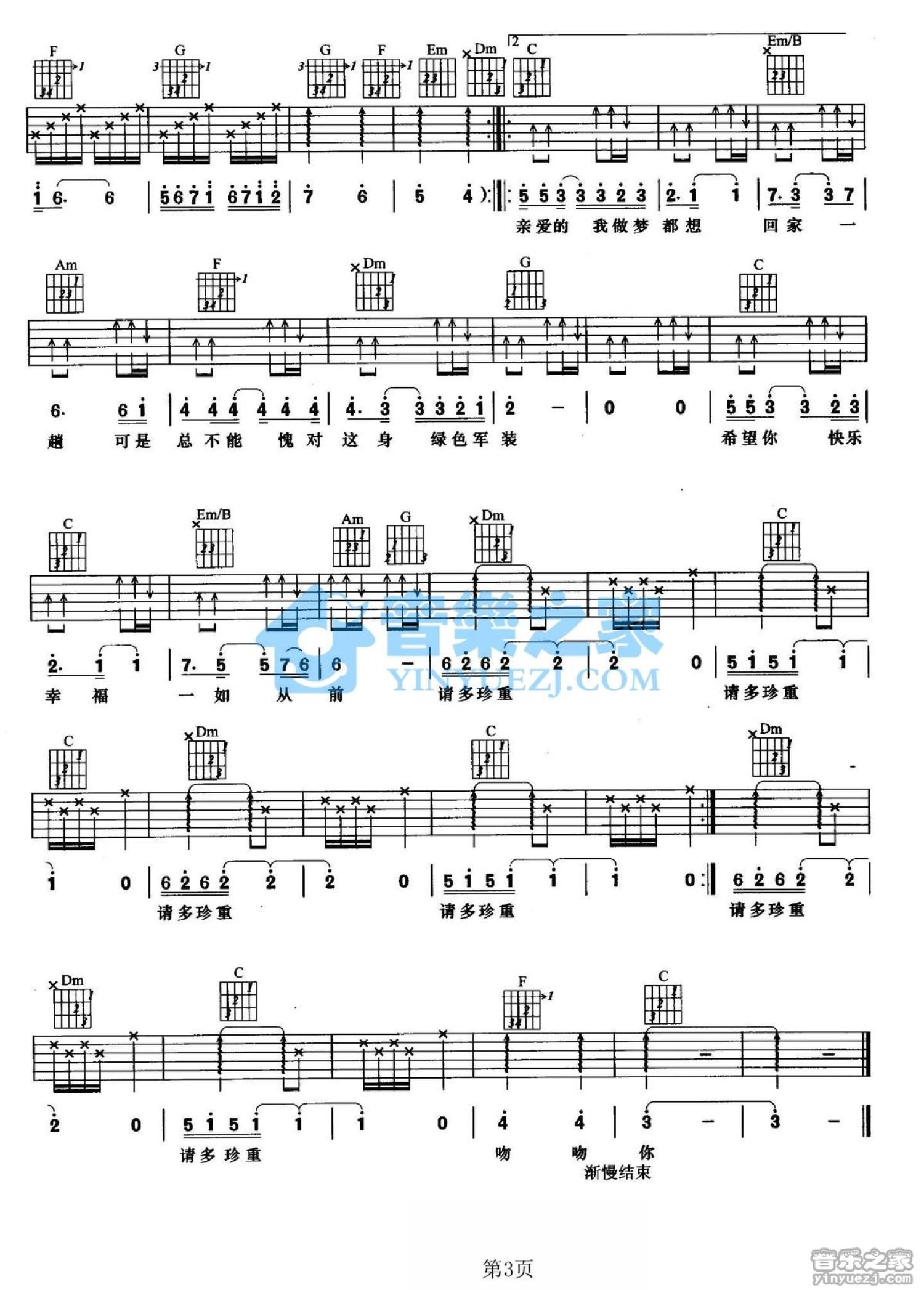 当前位置:琴谱网>吉他弹唱>士兵情书