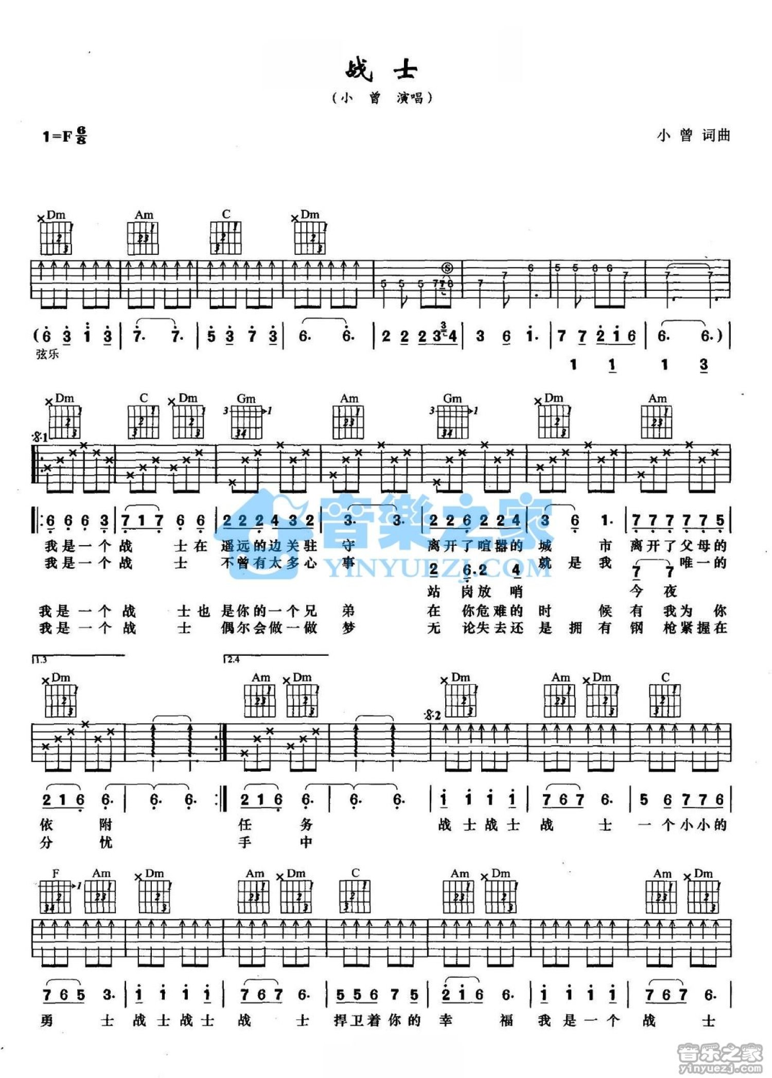 曲谱介绍: F调版小曾《战士》吉他弹唱六线谱