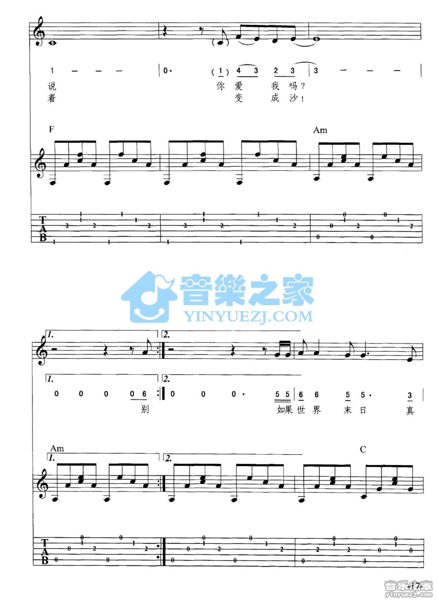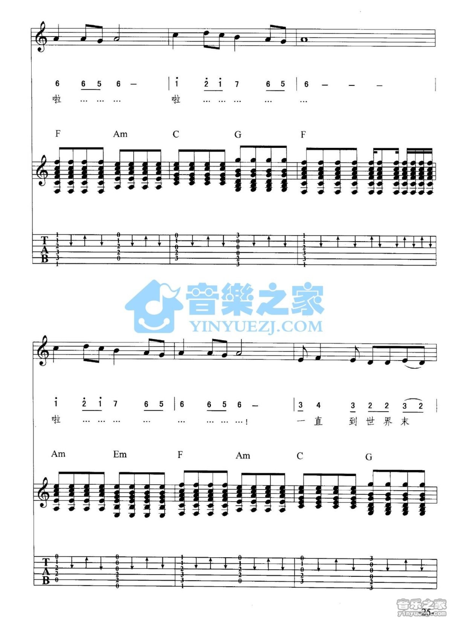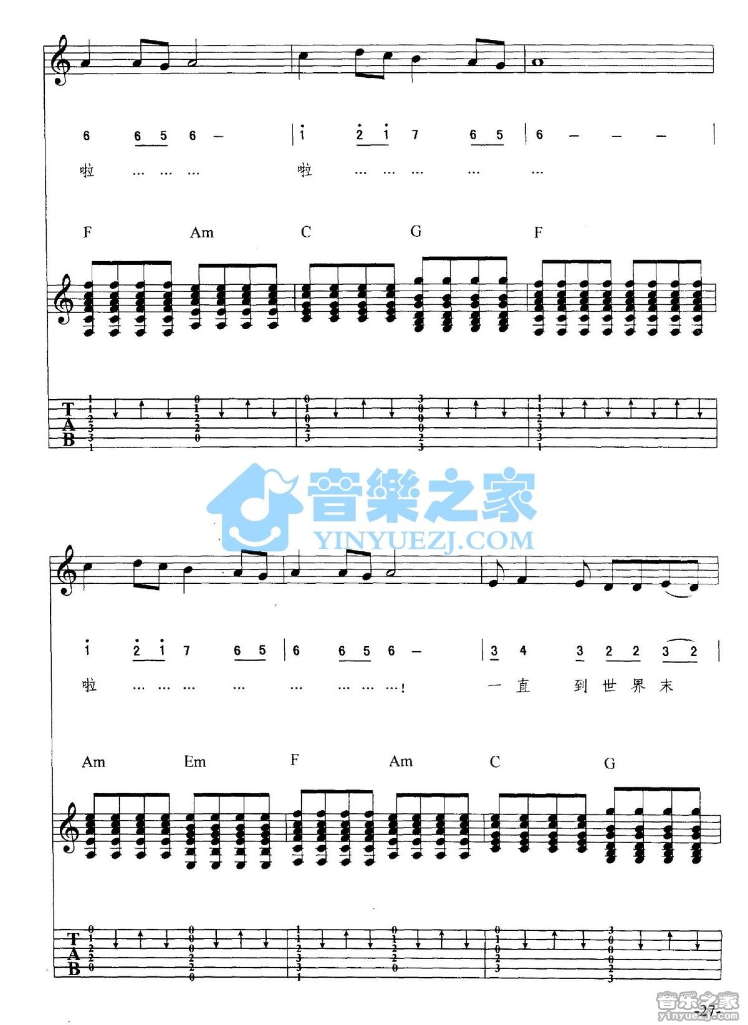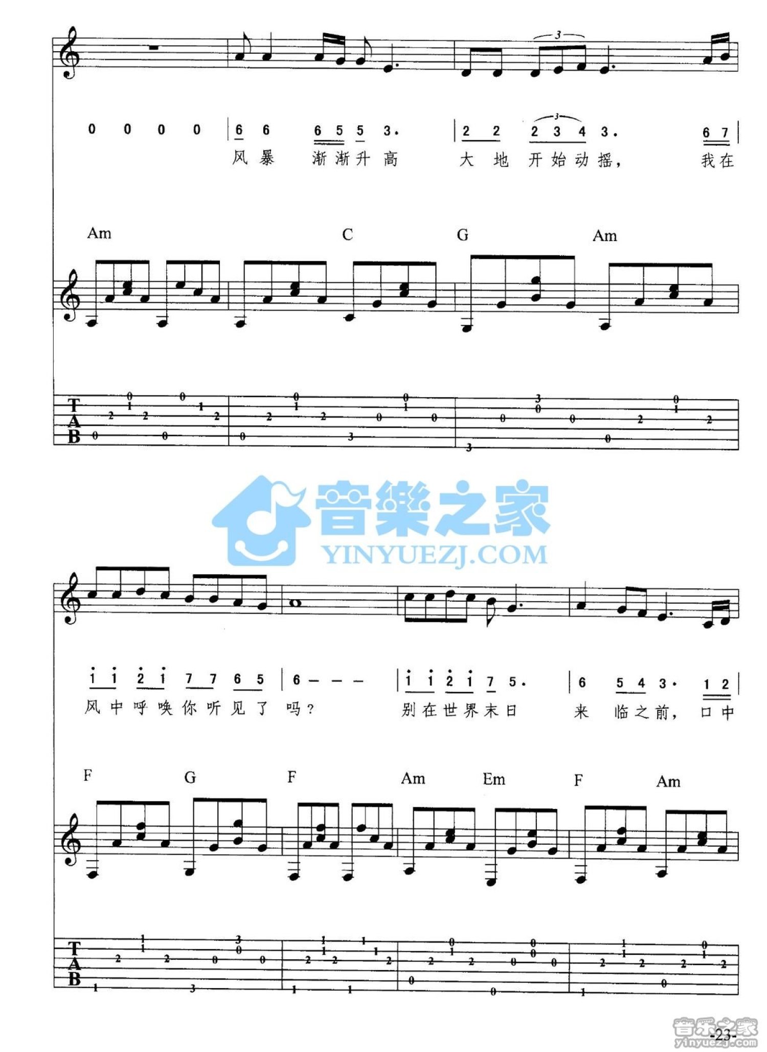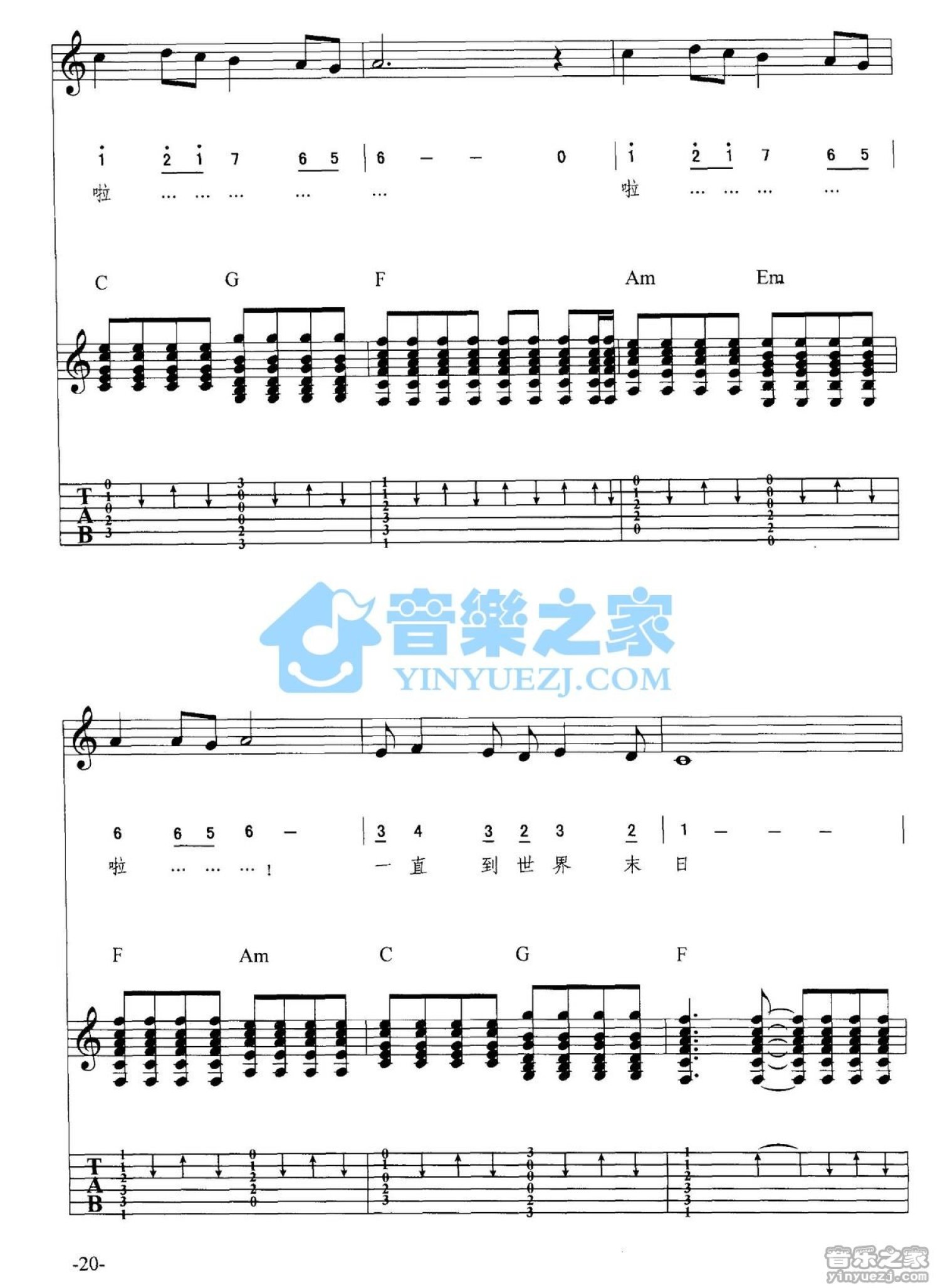 曲谱介绍: 《知道世界末日》吉他弹唱六线谱