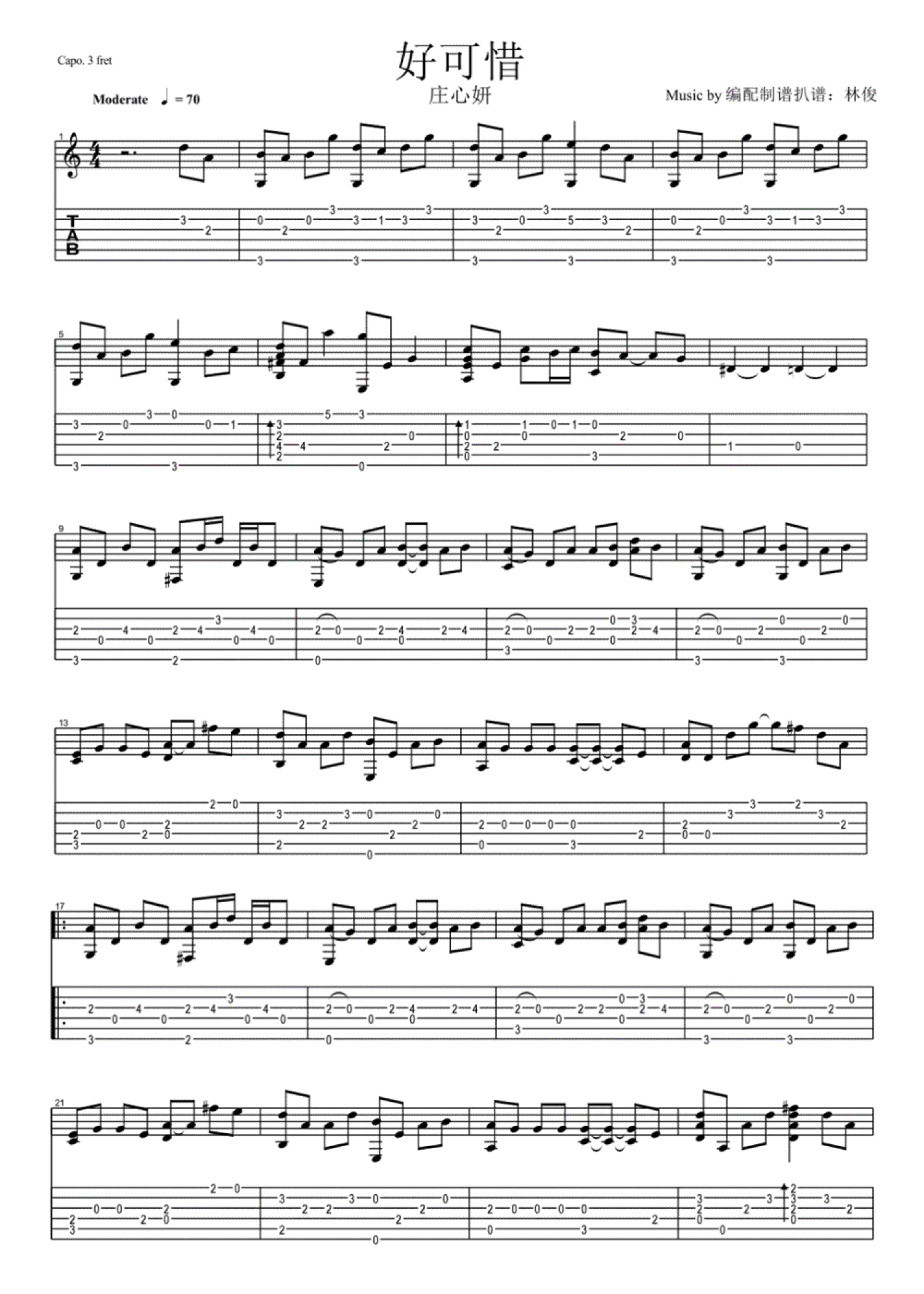 好可惜吉他谱 - 庄心妍 - 吉他独奏谱