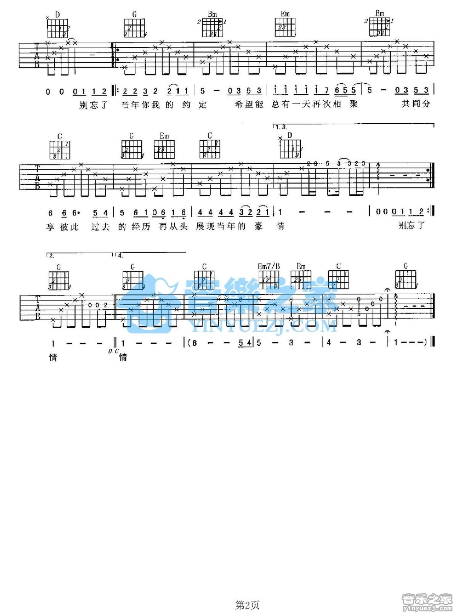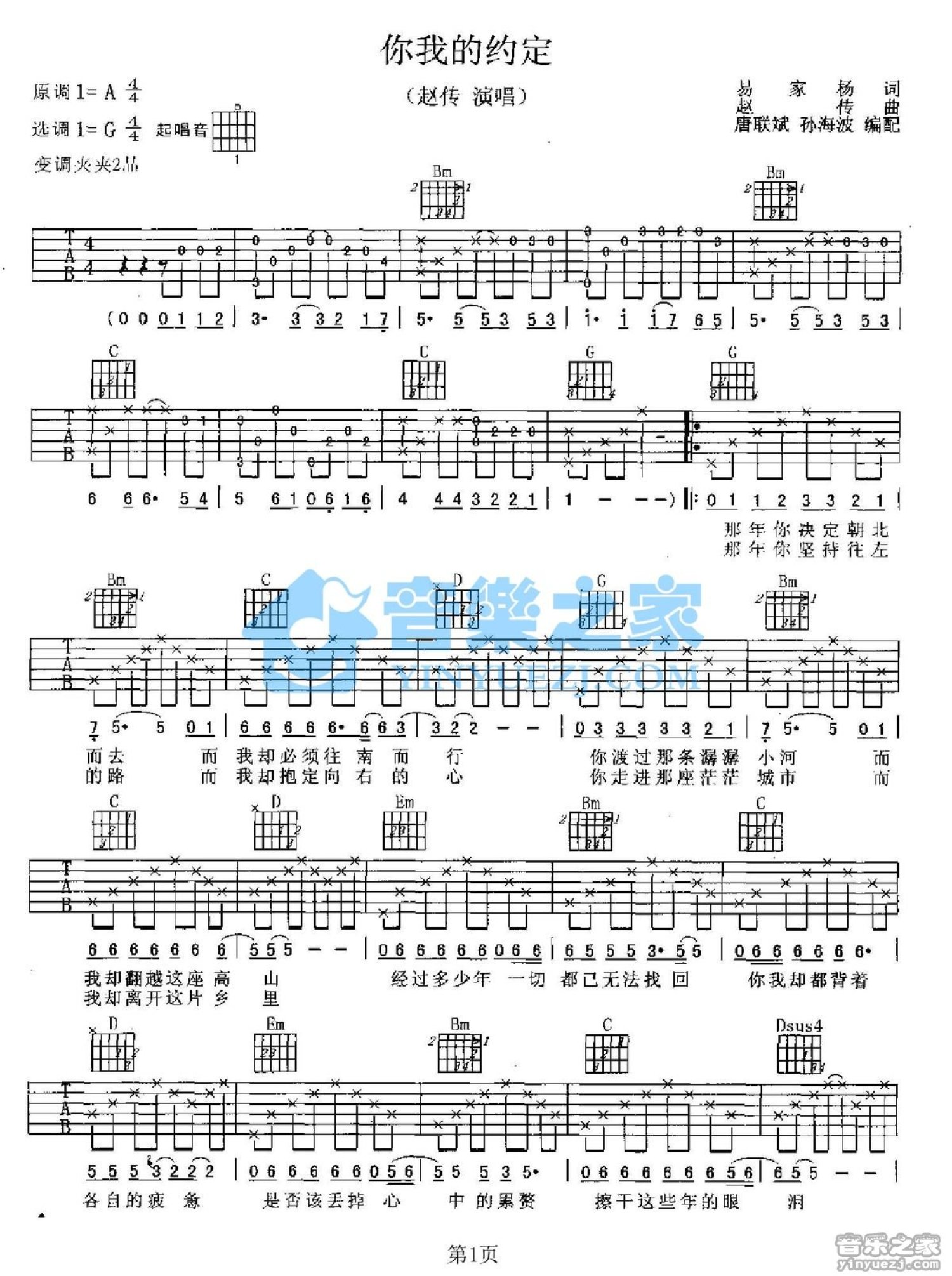 曲谱介绍: G调版赵传《你我的约定》吉他弹唱六线谱