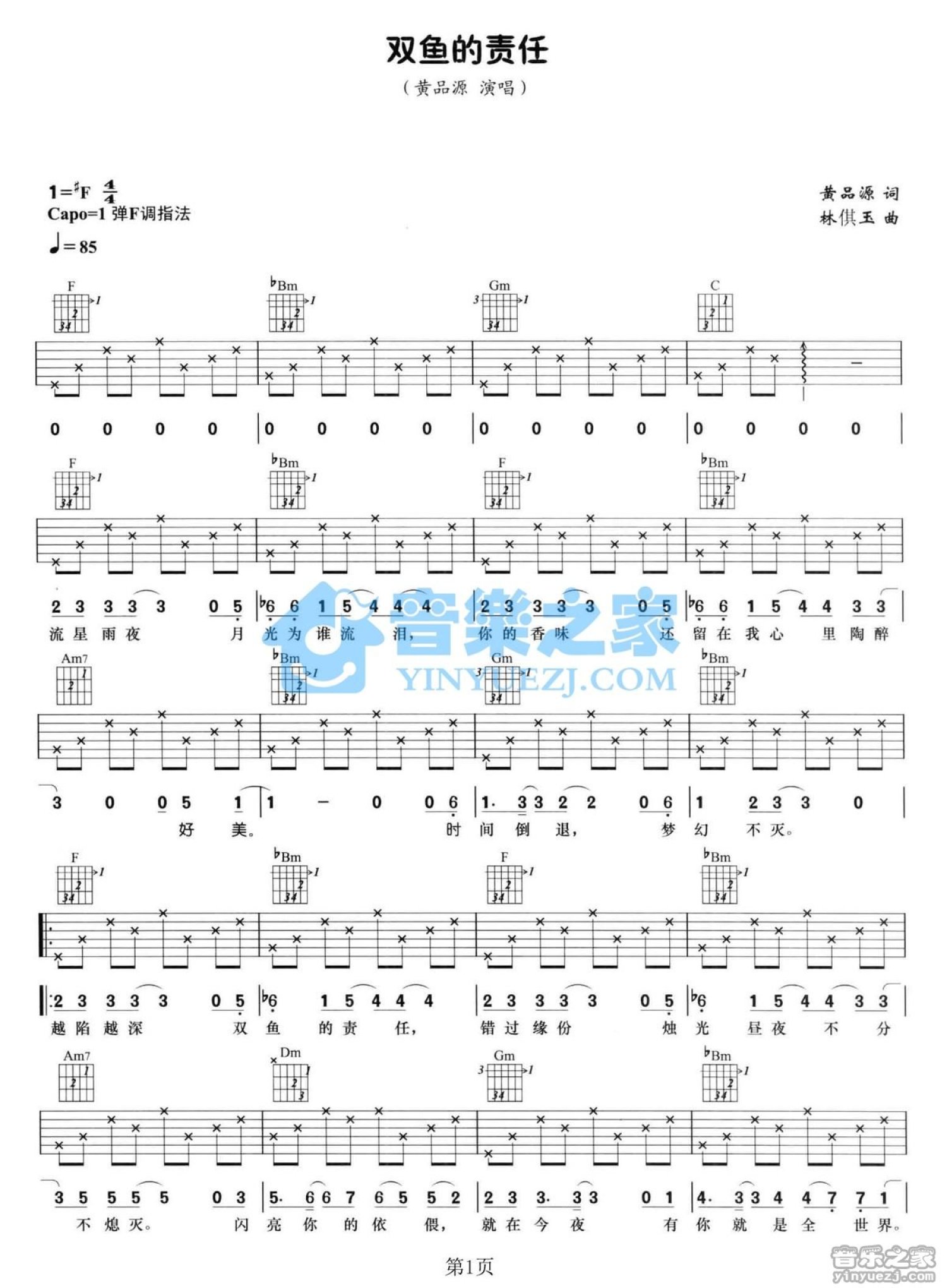 双鱼的责任吉他谱 - 黄品源 - F调吉他弹唱谱