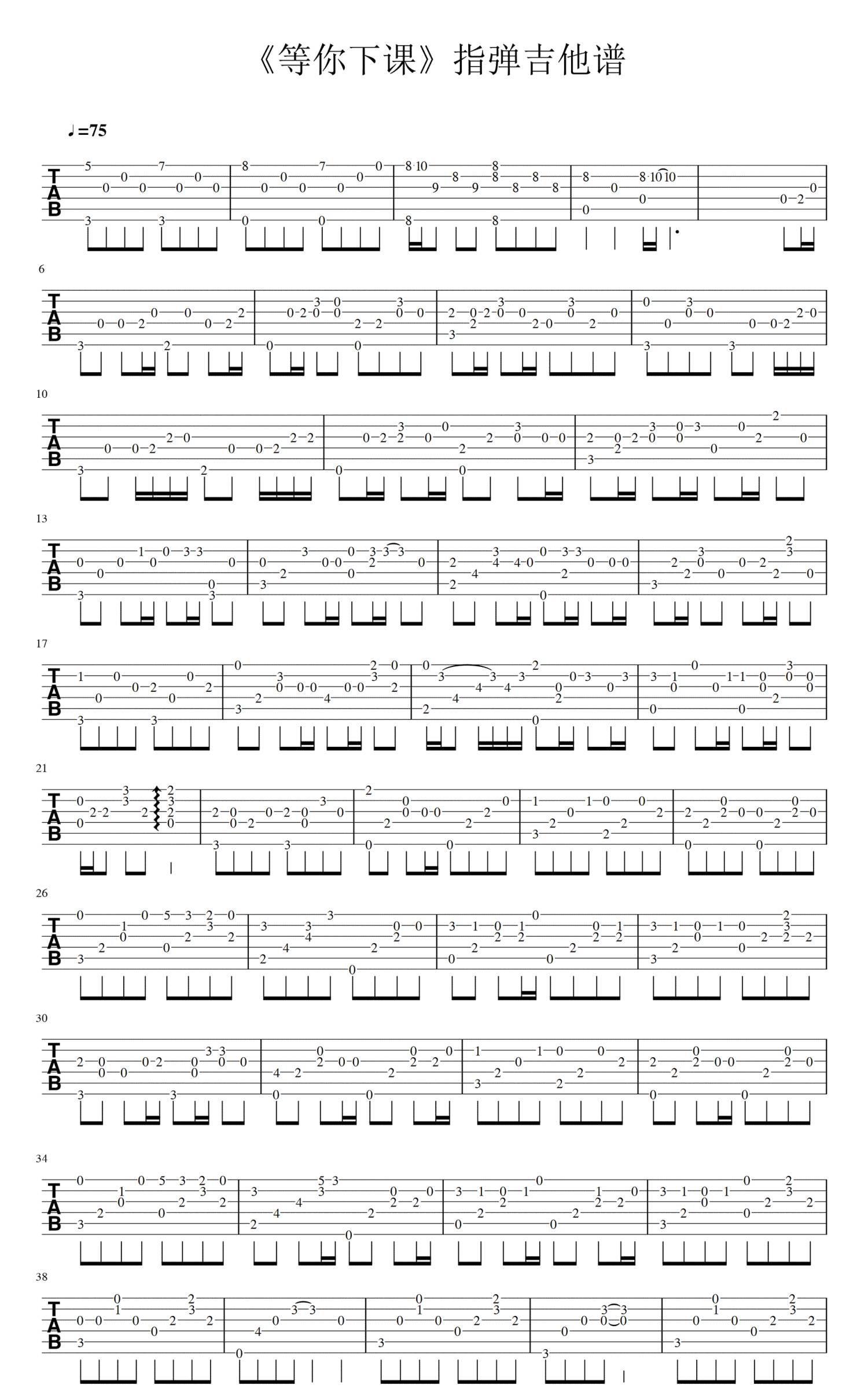等你下课吉他谱 - 周杰伦 - 吉他独奏谱
