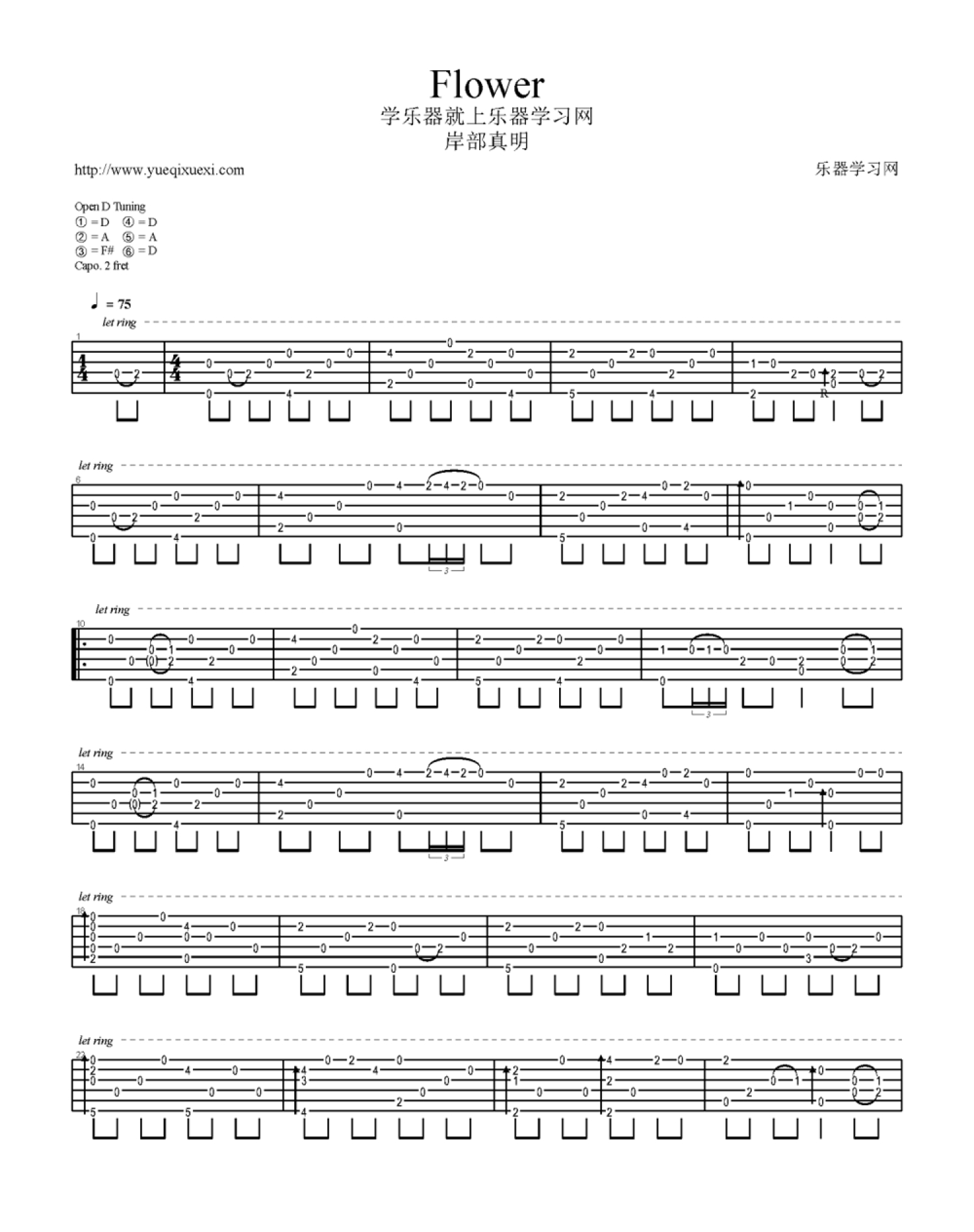 flower吉他谱 - 岸部真明 - 吉他独奏谱