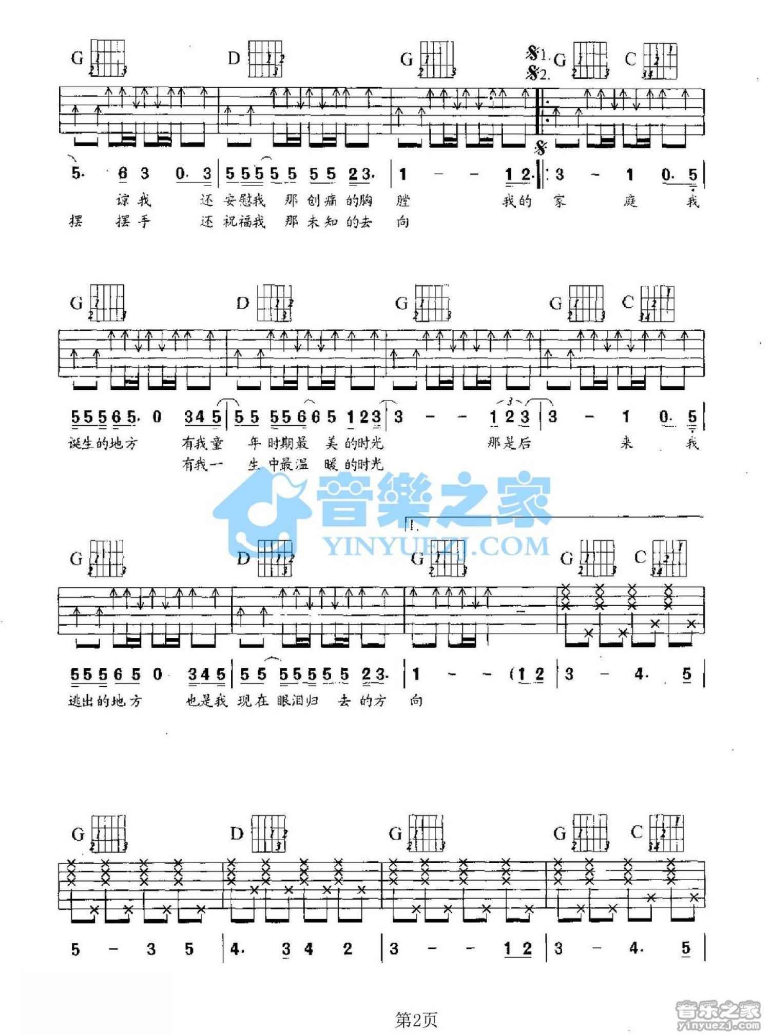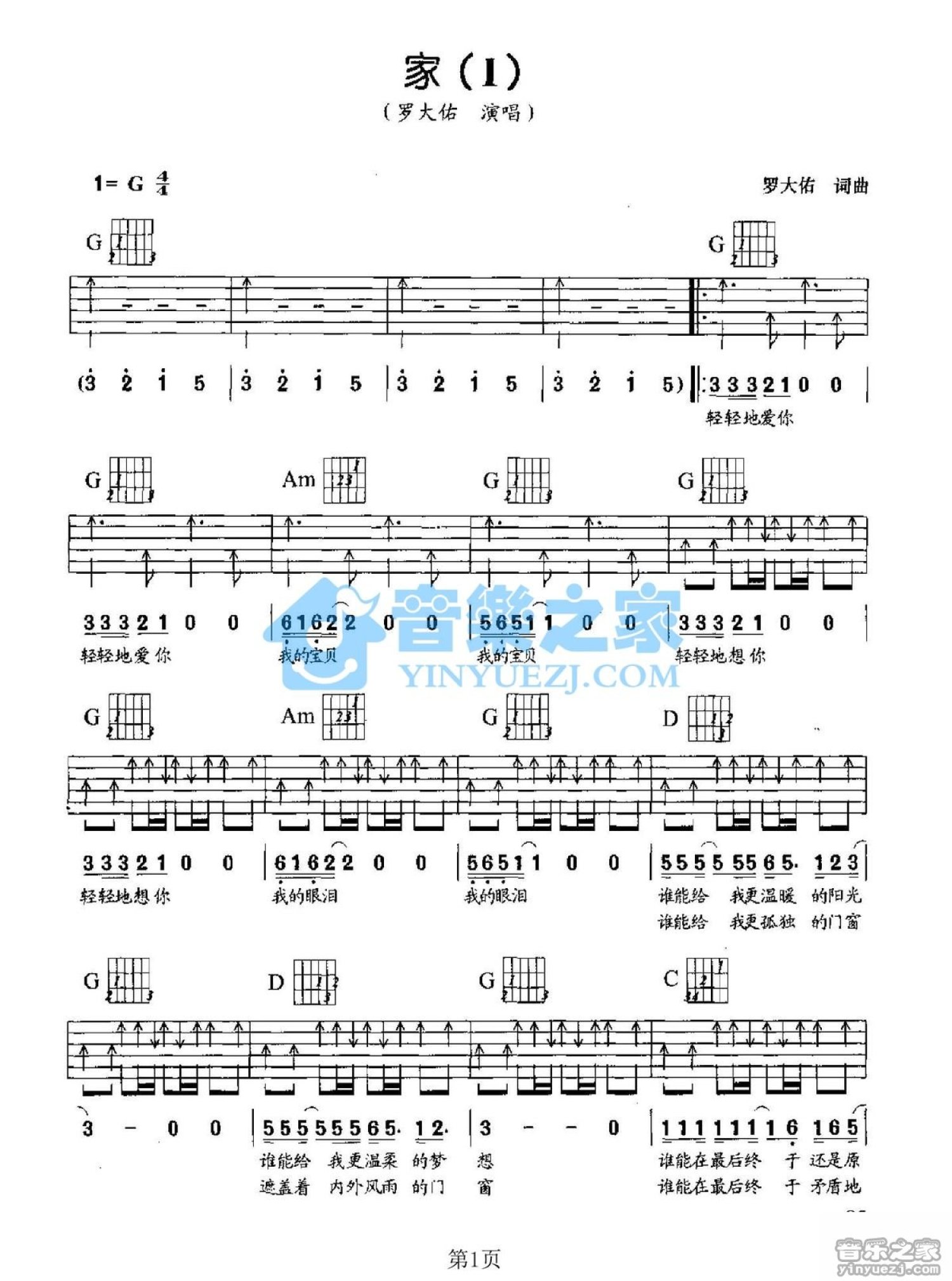 曲谱介绍: G调版罗大佑《家(I)》吉他弹唱六线谱