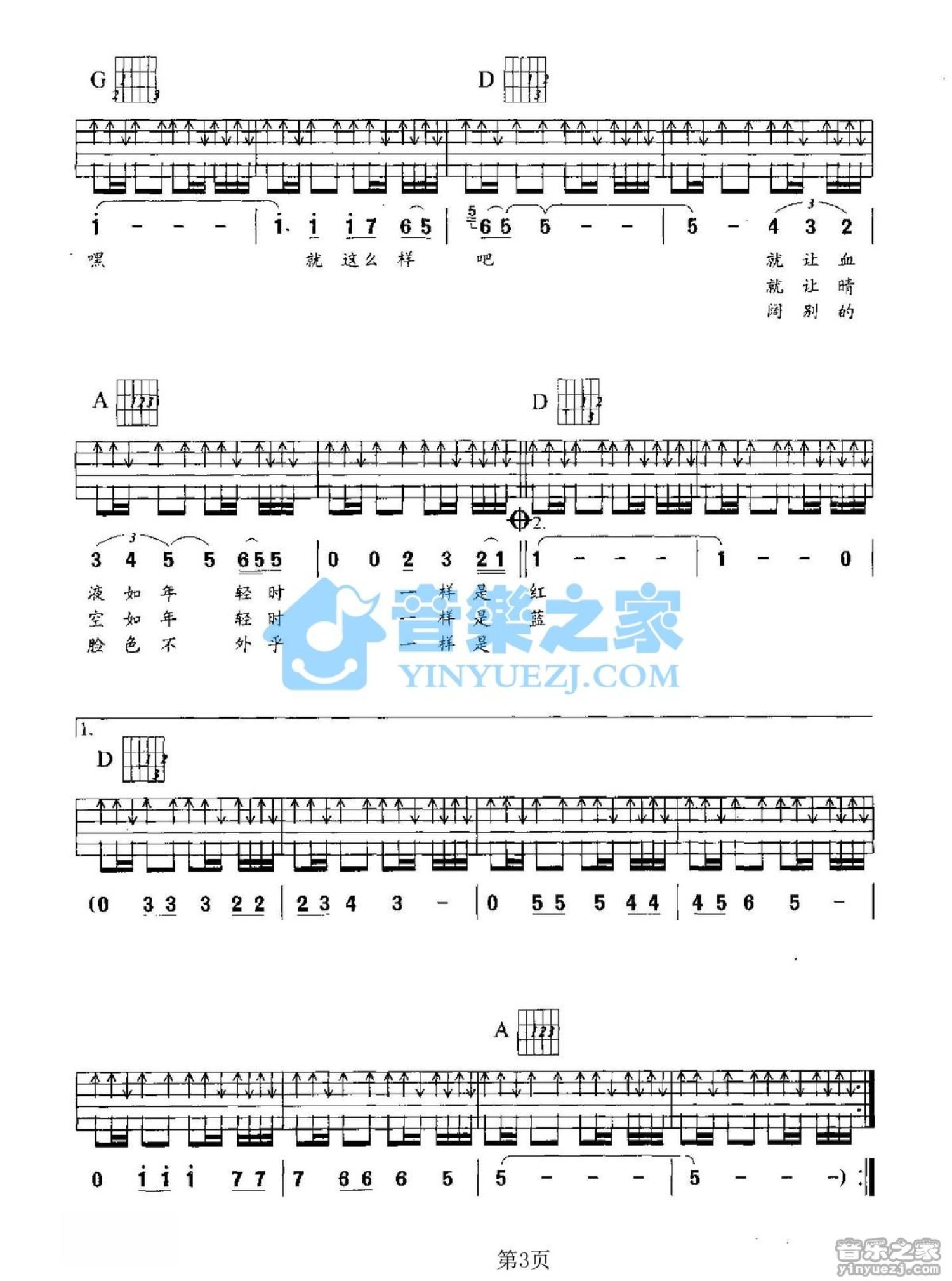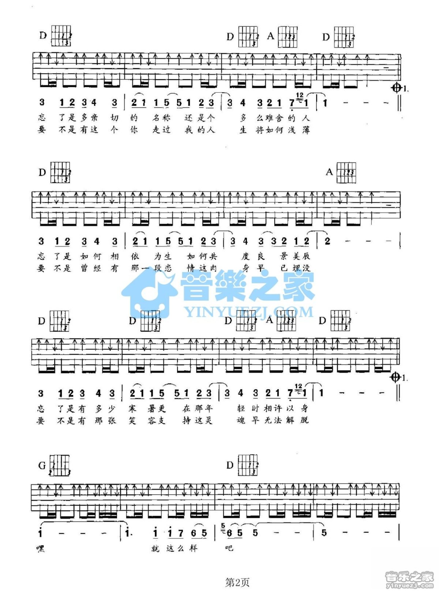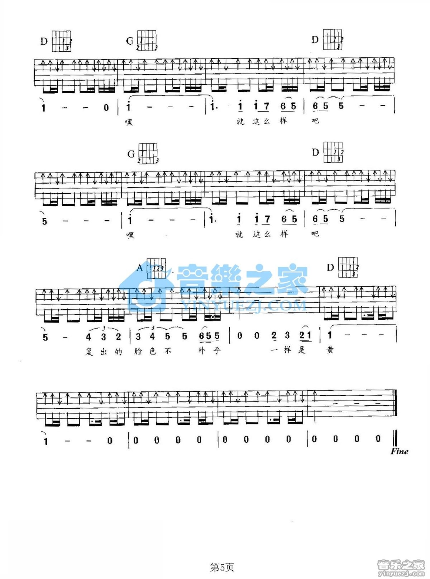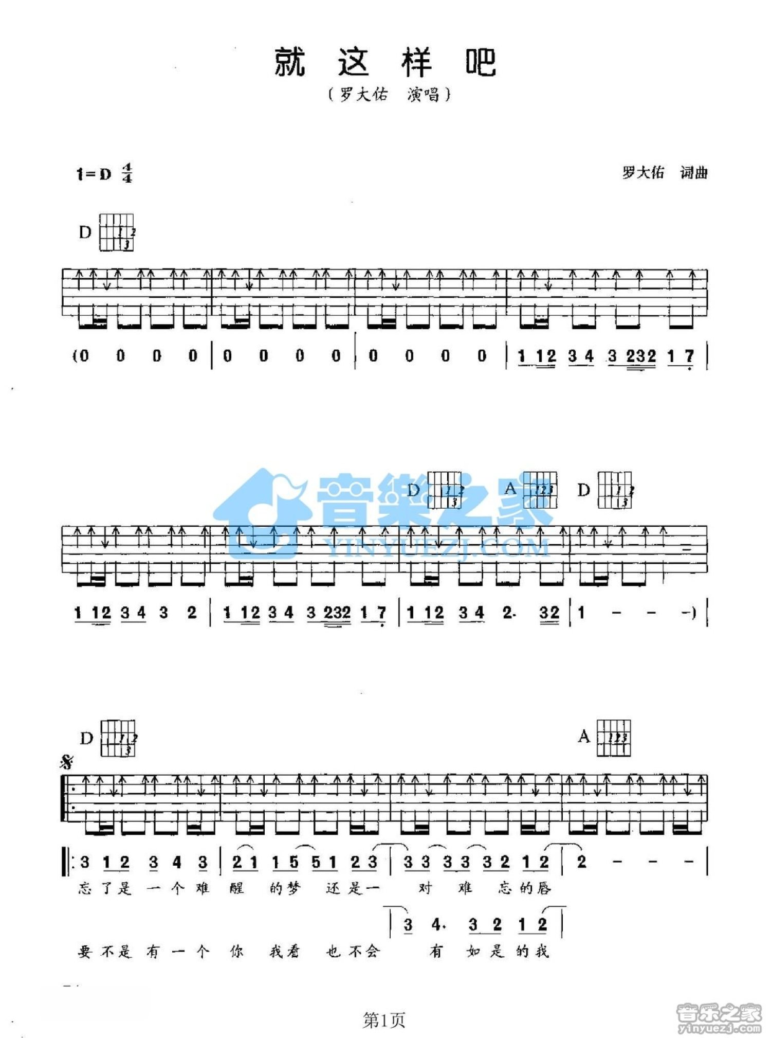 曲谱介绍: D调版罗大佑《就这么样吧》吉他弹唱六线谱