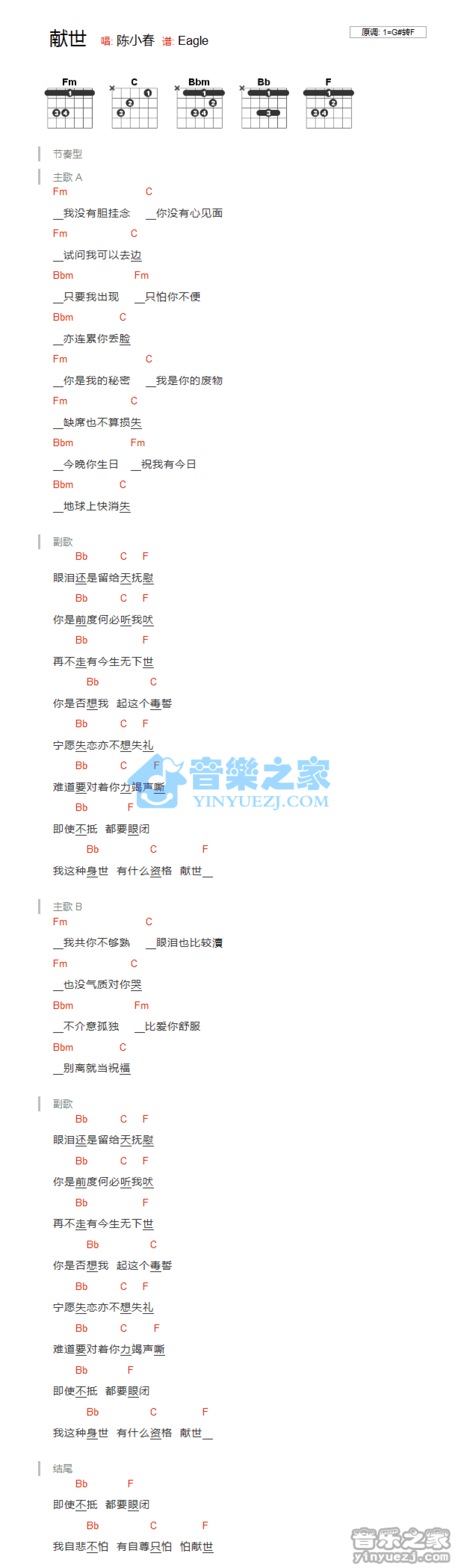 献世吉他谱 - 陈小春 - 吉他弹唱谱 - 和弦谱