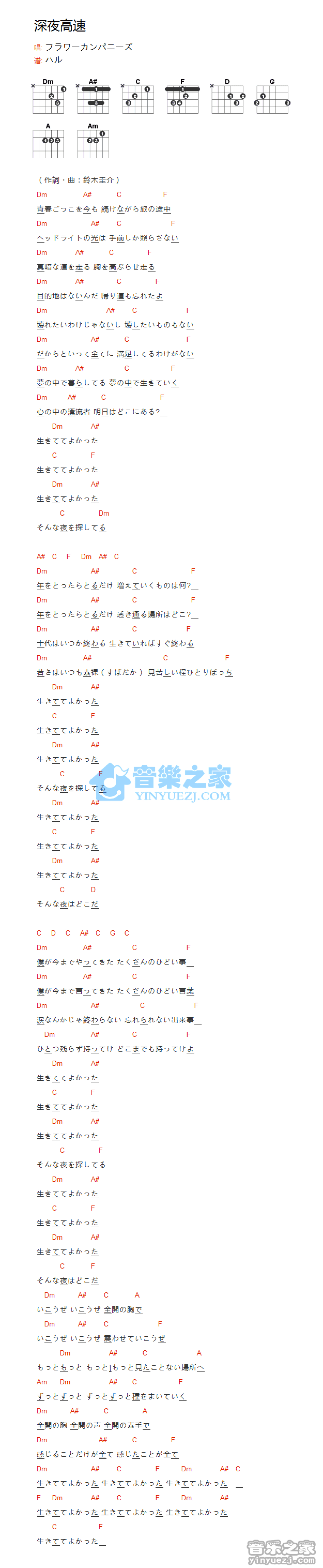 曲谱介绍: フラワ`カンパニ`ズ《深夜高速》吉他和弦弹唱谱