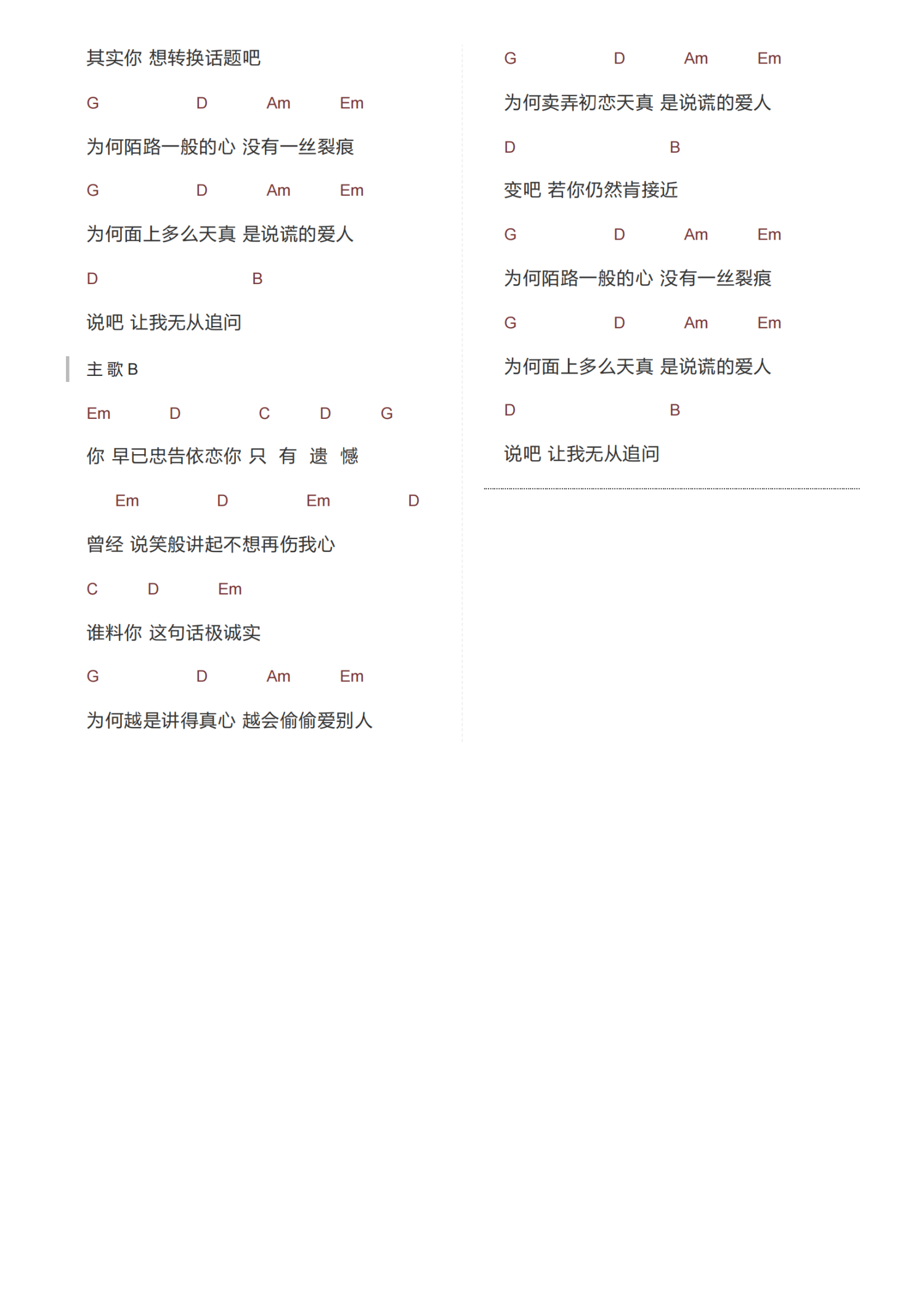 当前位置:琴谱网>吉他弹唱>说谎的爱人