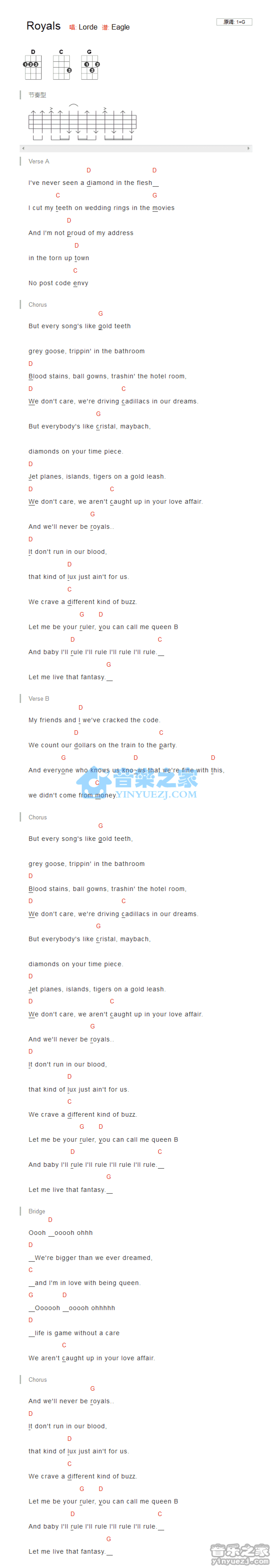 曲谱介绍: G调版Lorde《Loyals》吉他和弦弹唱谱