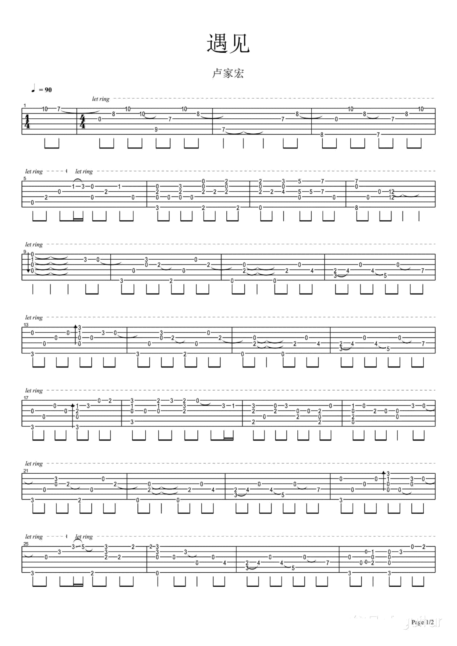 遇见吉他谱 - 卢家宏 - 吉他独奏谱
