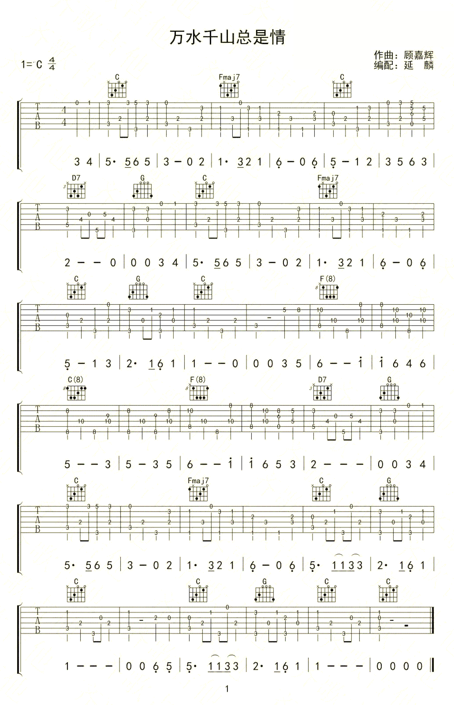 万水千山总是情吉他谱 - 汪明荃 - C调吉他独奏谱