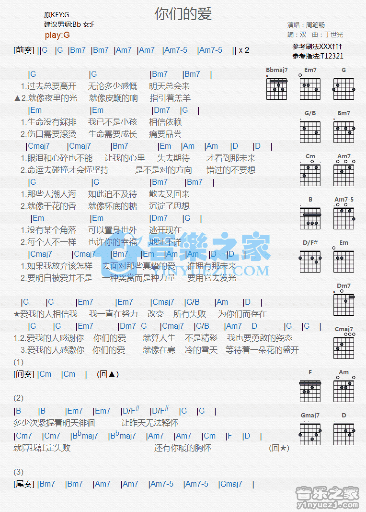 曲谱介绍: G调版《你们的爱》吉他和弦弹唱谱