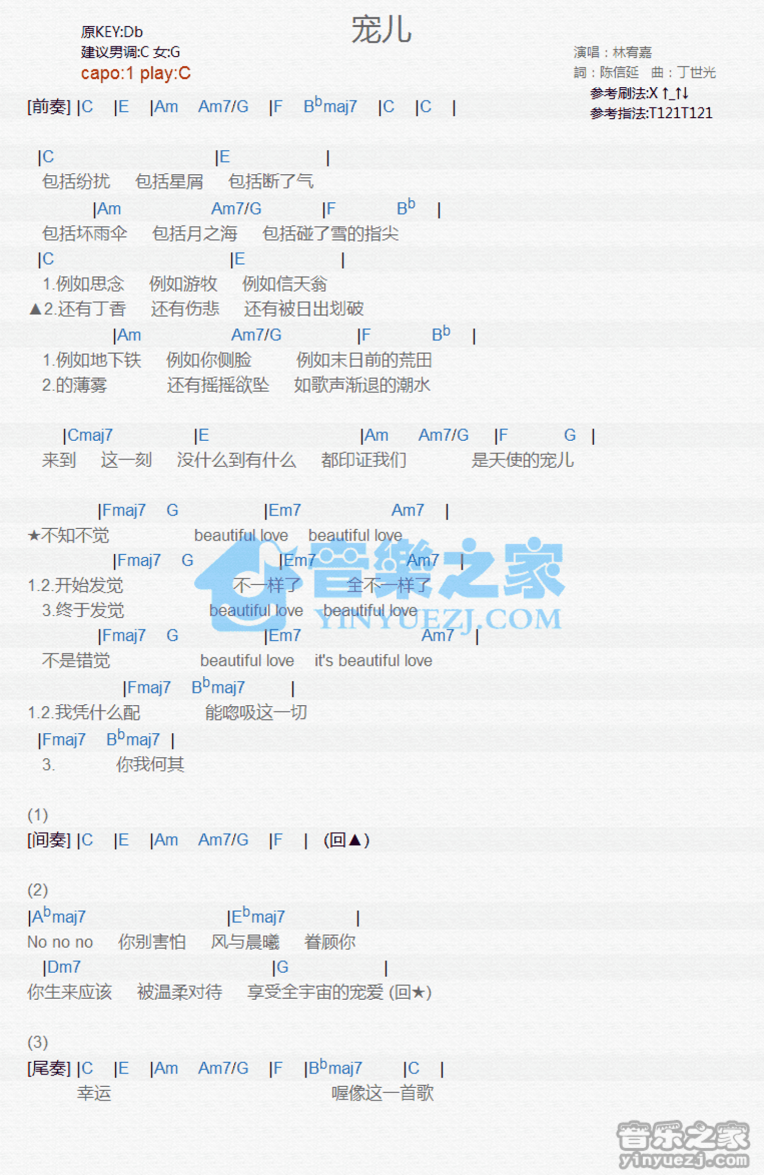 当前位置:琴谱网>吉他弹唱>宠儿