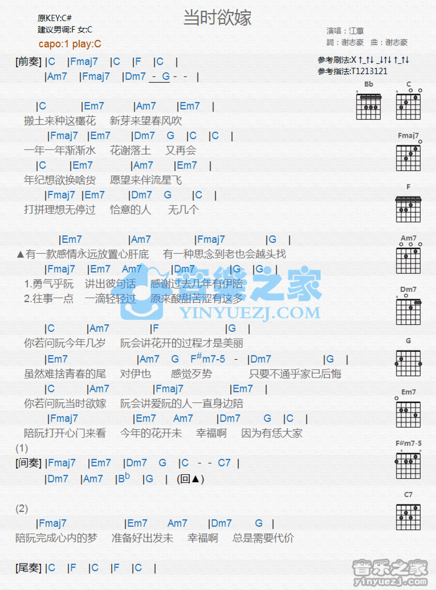 当前位置:琴谱网>吉他弹唱>当时欲嫁