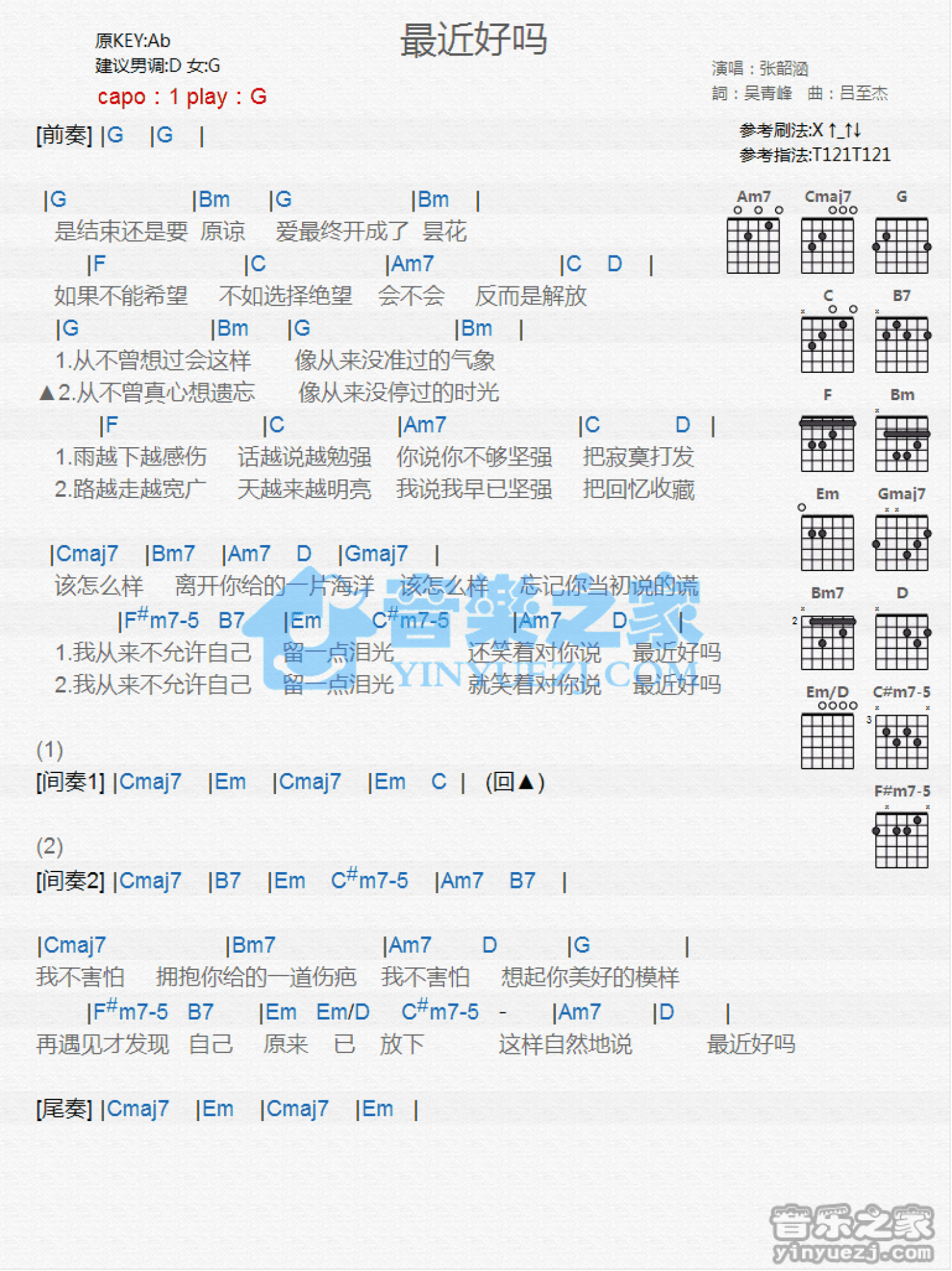 当前位置:琴谱网>吉他弹唱>最近好吗