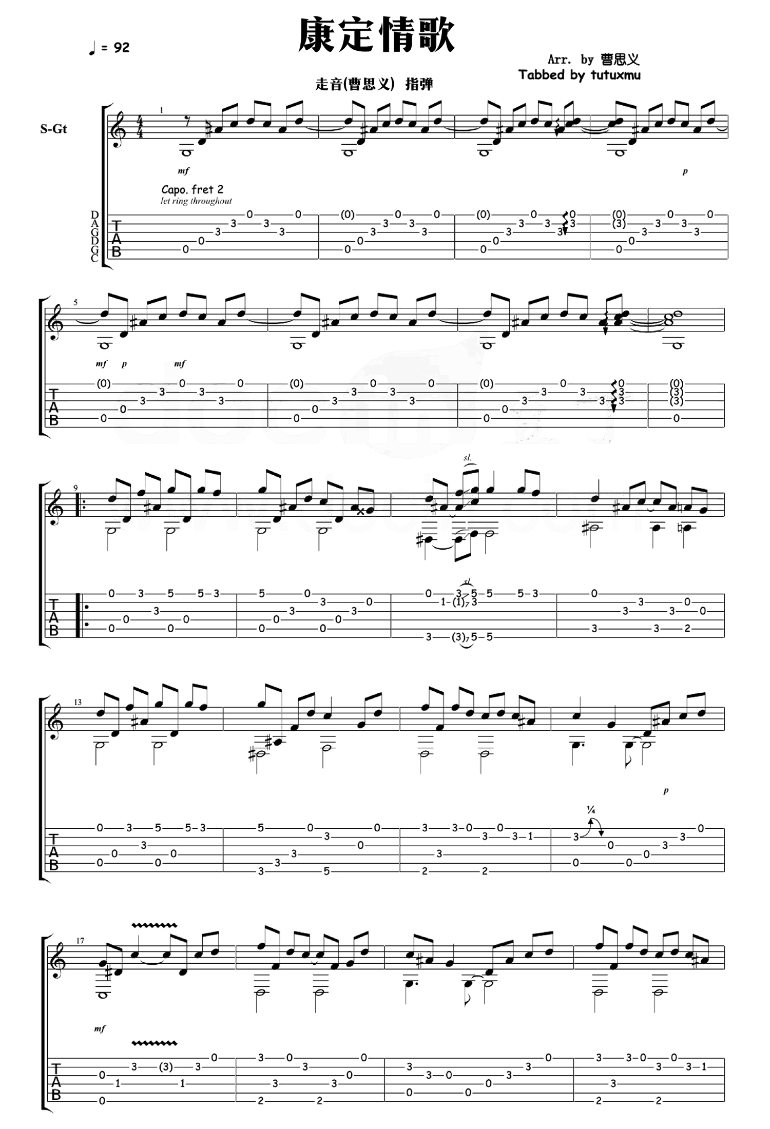 康定情歌吉他谱 - 走音/曹思义 - 吉他独奏谱