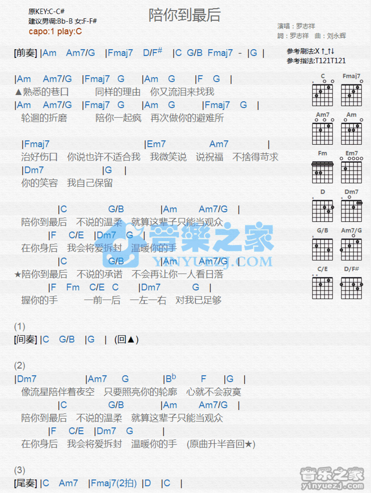 陪你到最后吉他谱 - 罗志祥 - C调吉他弹唱谱 - 和弦谱