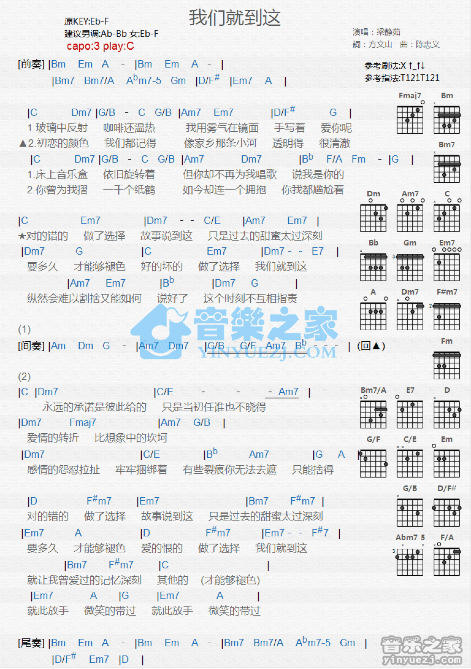 曲谱介绍: C调版梁静茹《我们就到这》吉他和弦弹唱谱