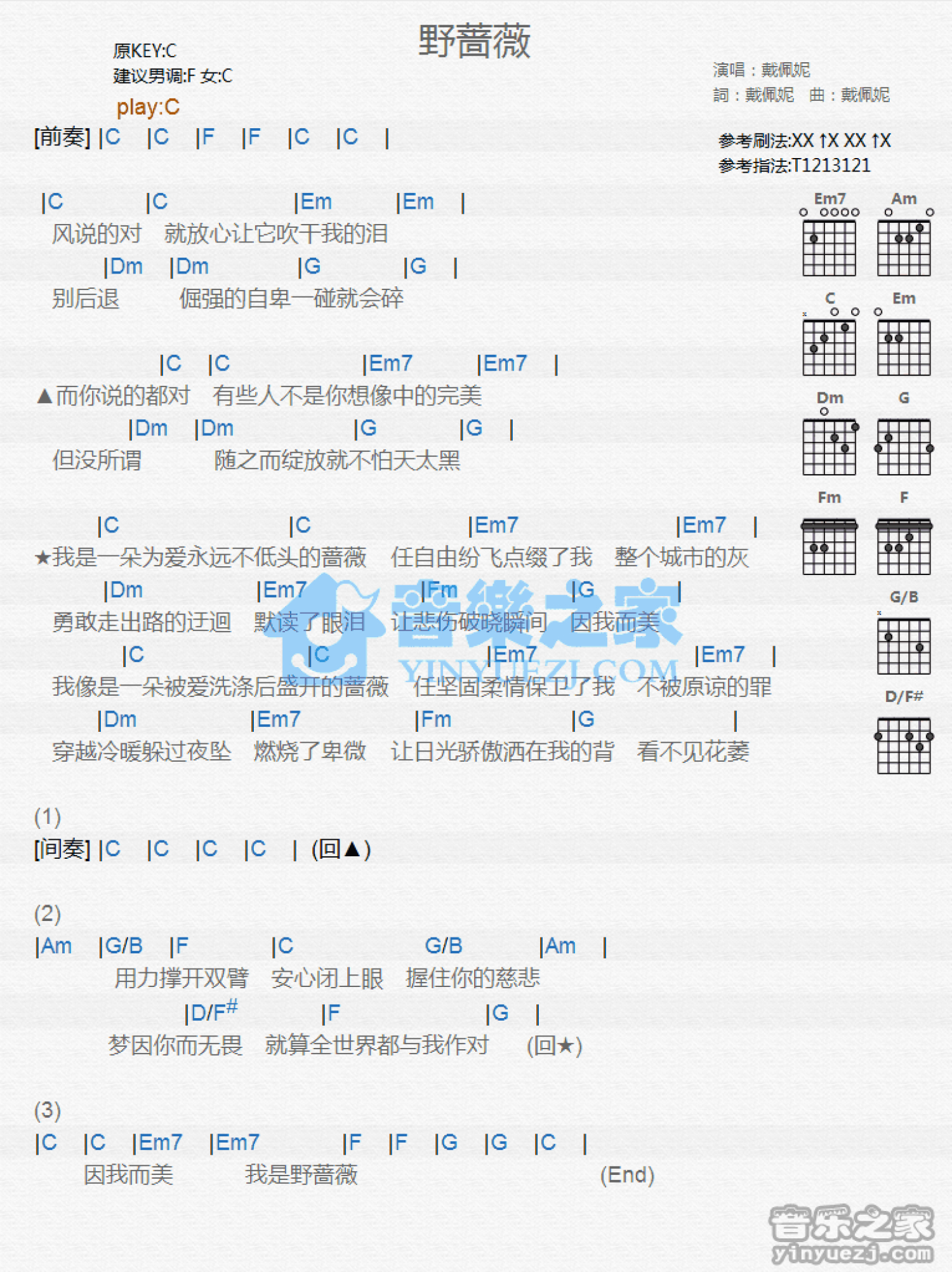 野蔷薇吉他谱 - 戴佩妮 - C调吉他弹唱谱 - 和弦谱