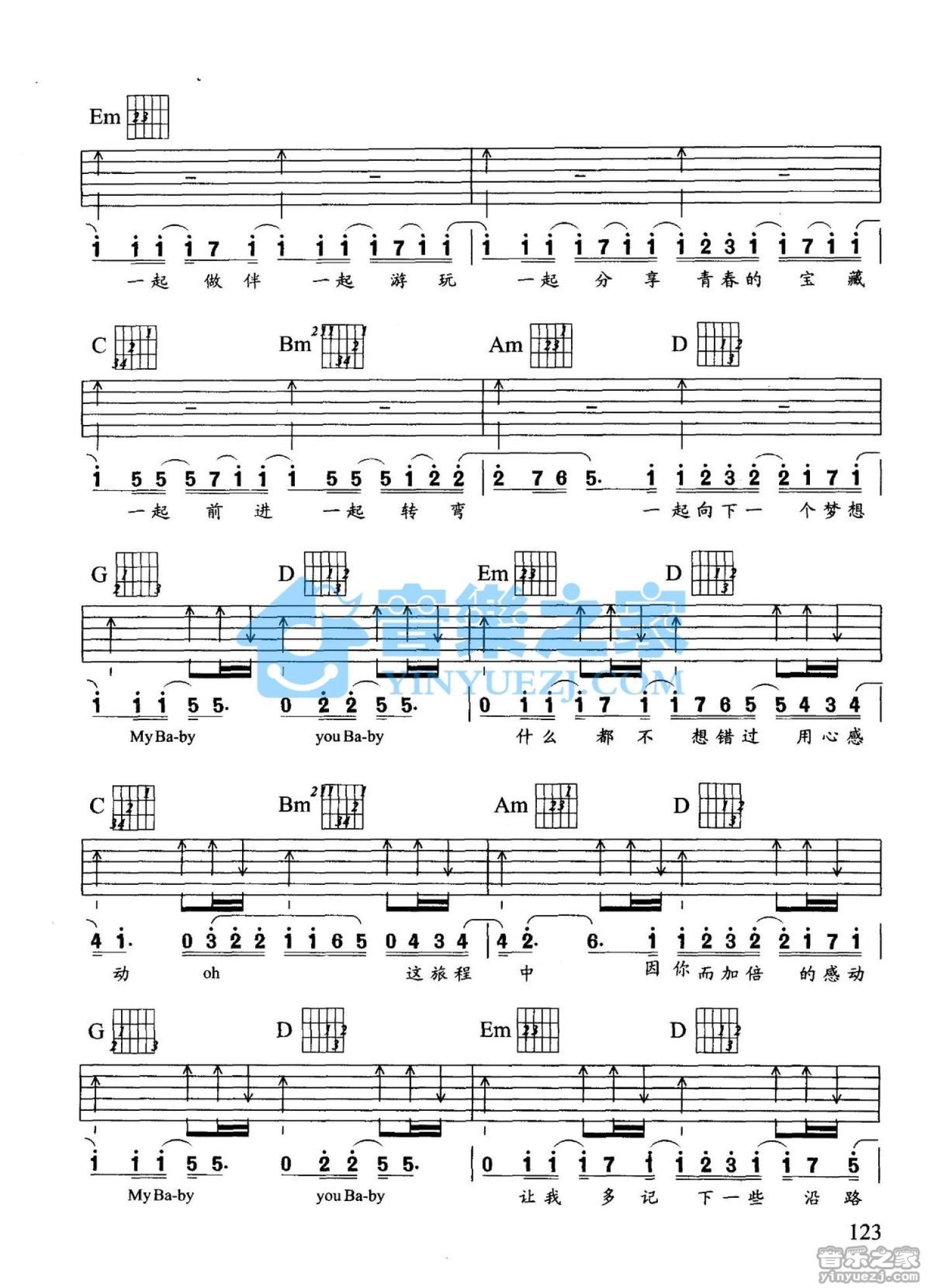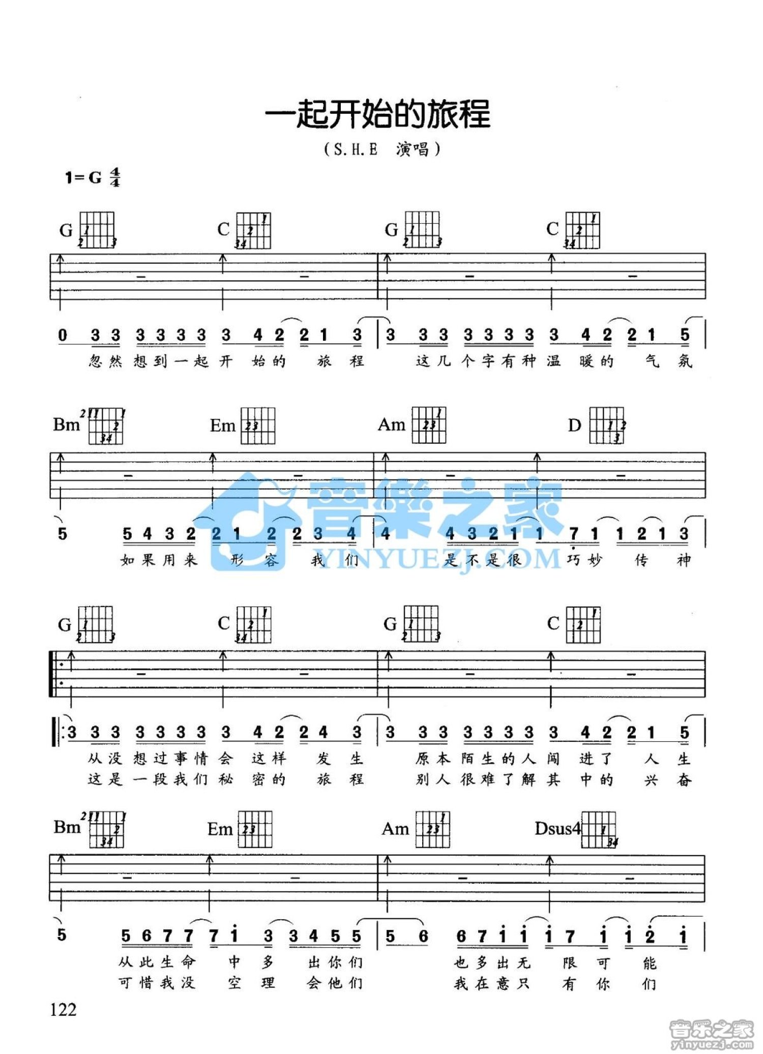 曲谱介绍: G调版S.H.E《一起开始的旅程》吉他弹唱六线谱