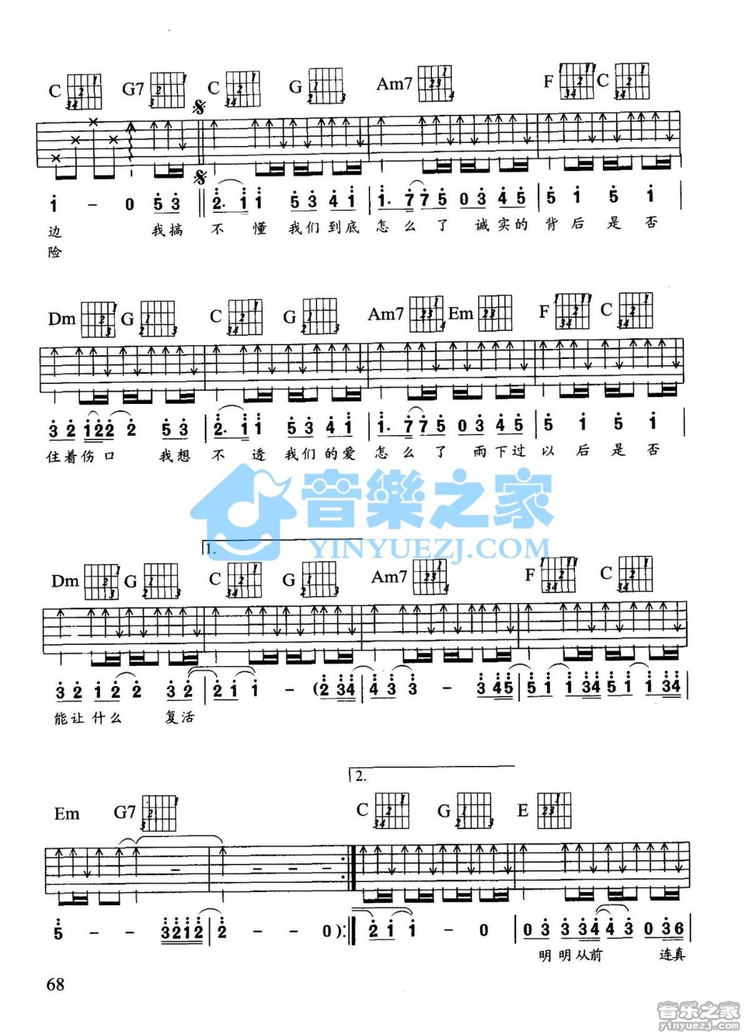 曲谱介绍: C调版《我们怎么了》吉他弹唱六线谱