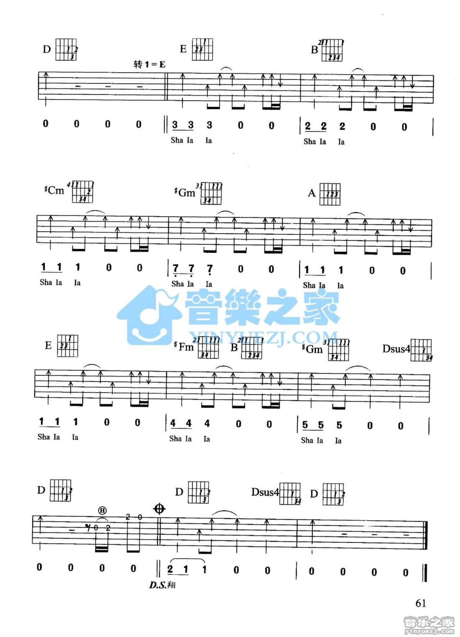 曲谱介绍: D调版 S.H.E《在爱的星空飞翔》吉他弹唱六线谱