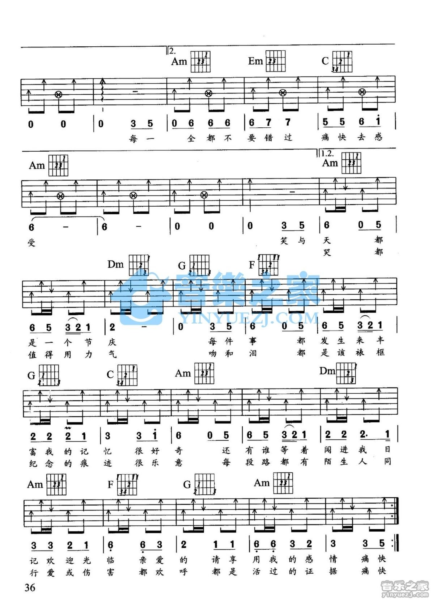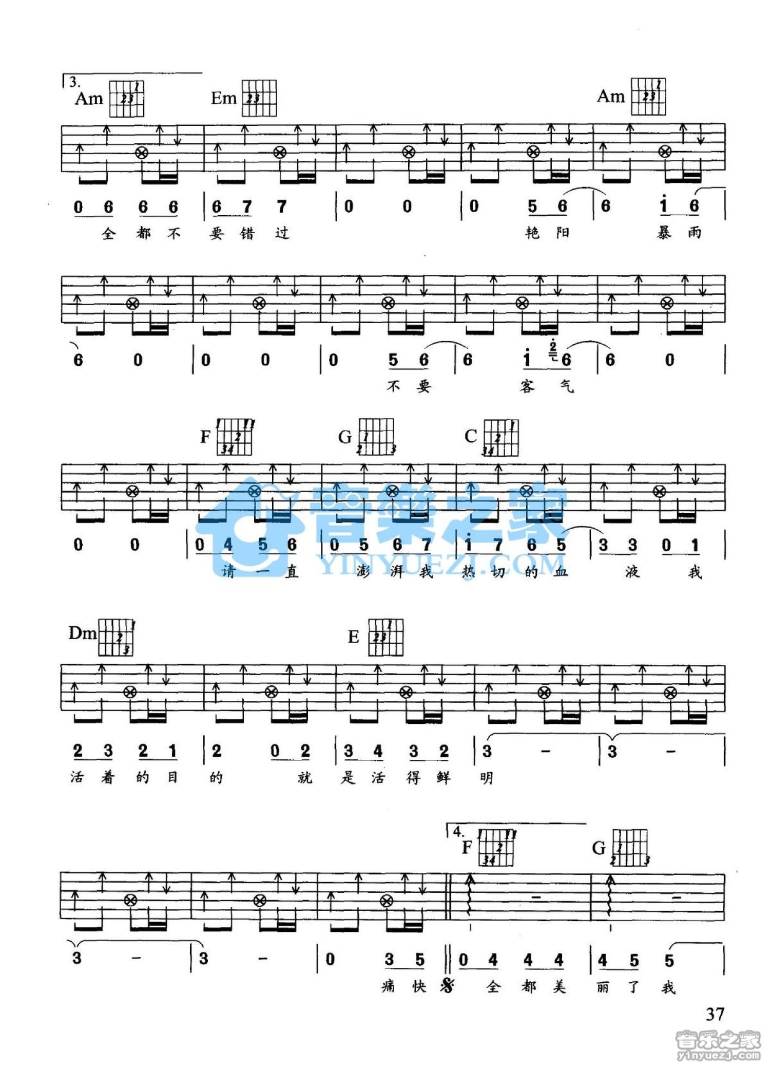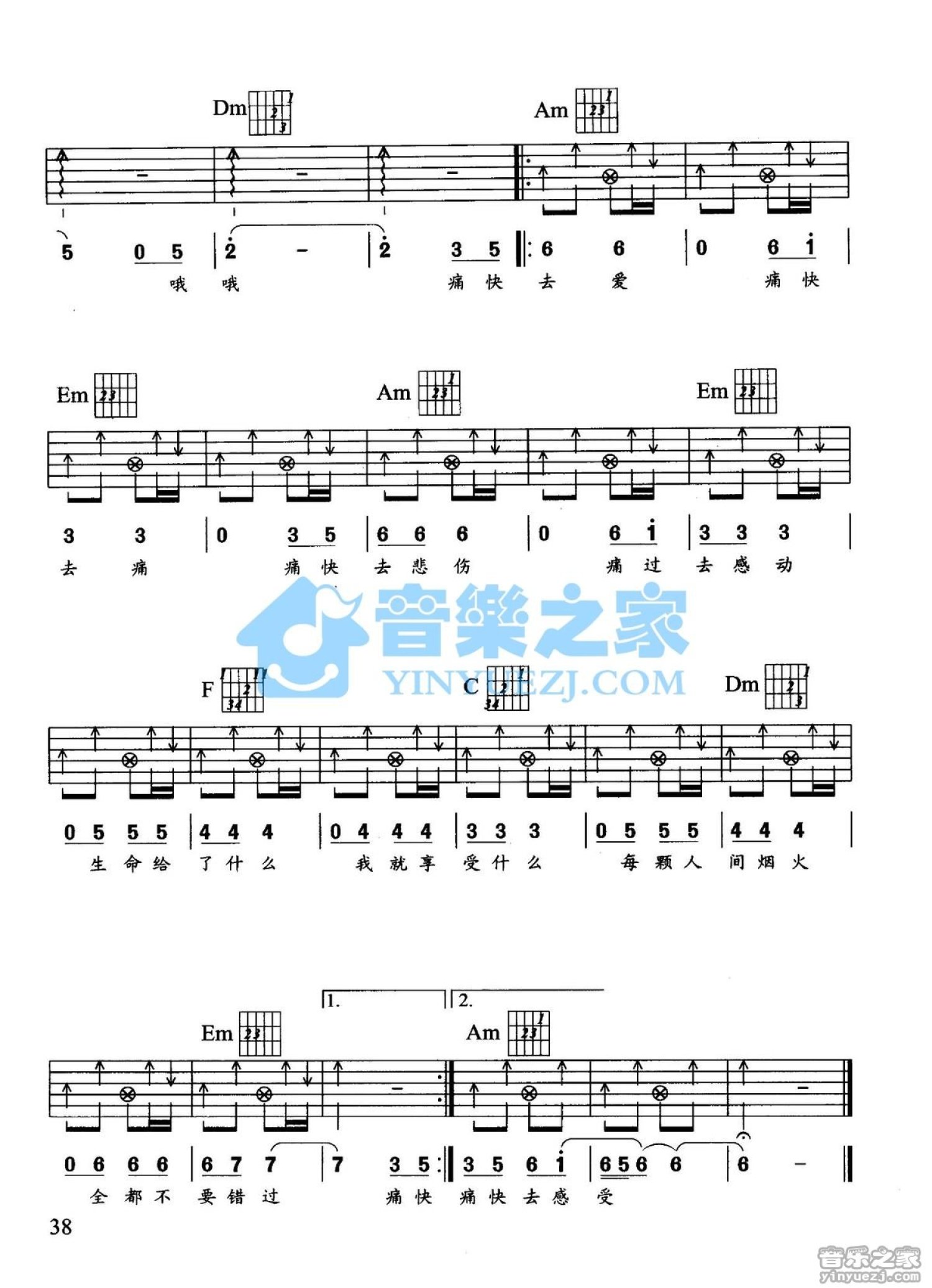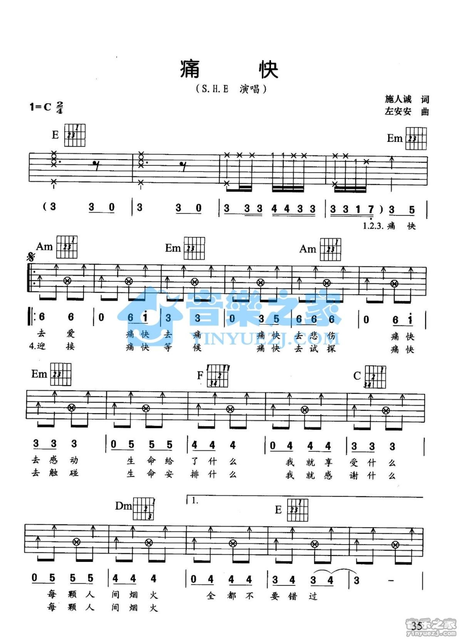 曲谱介绍: C调版《痛快》吉他弹唱六线谱