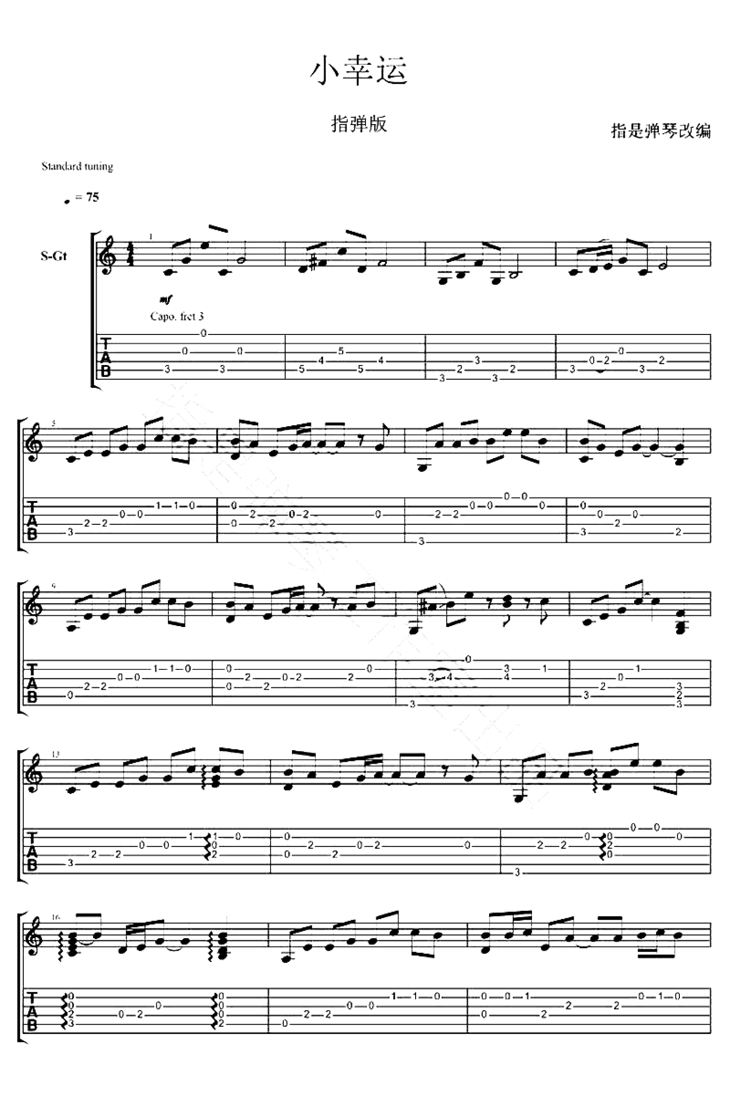 小幸运吉他谱 - 田馥甄 - 吉他独奏谱