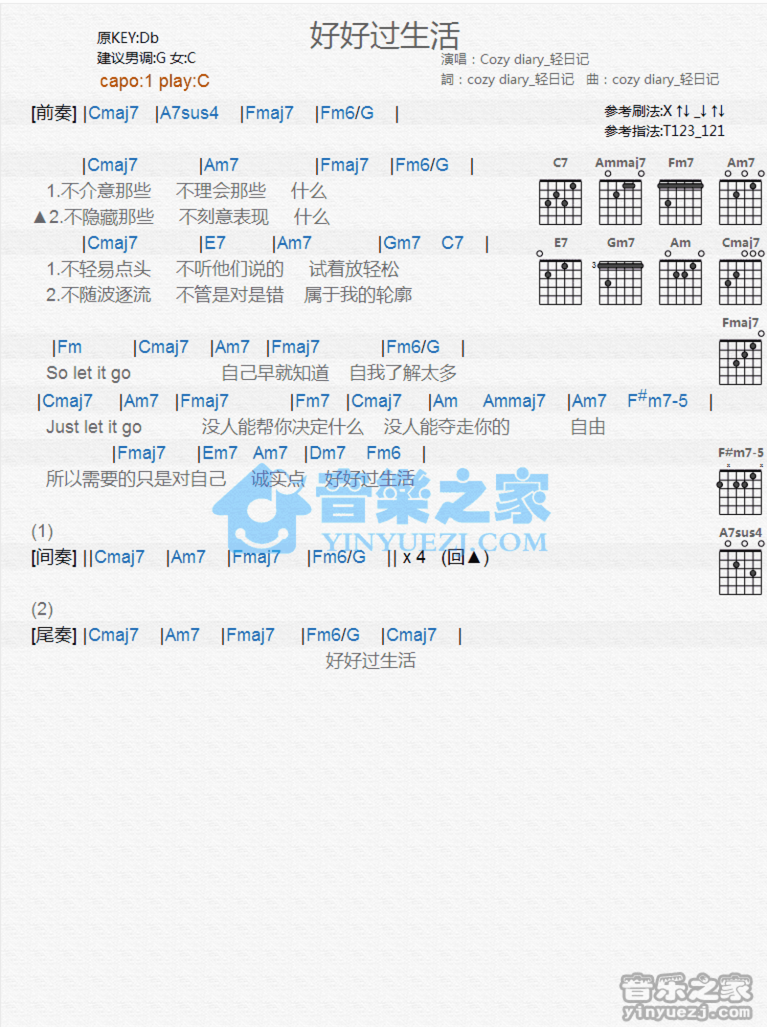 好好过生活吉他谱 - CozyDiary - C调吉他弹唱谱 - 和弦谱