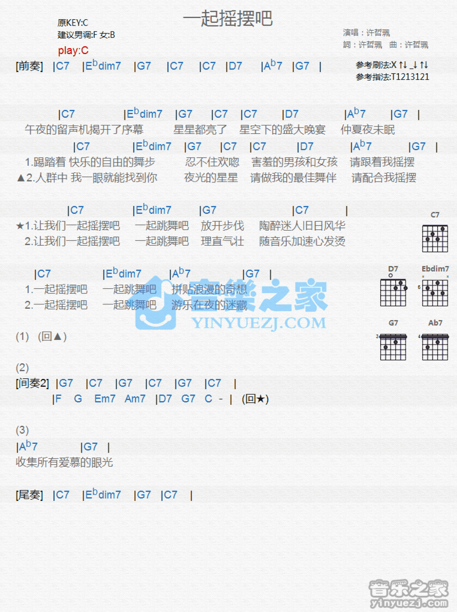 一起摇摆吧吉他谱 - 许哲 - C调吉他弹唱谱 - 和弦谱