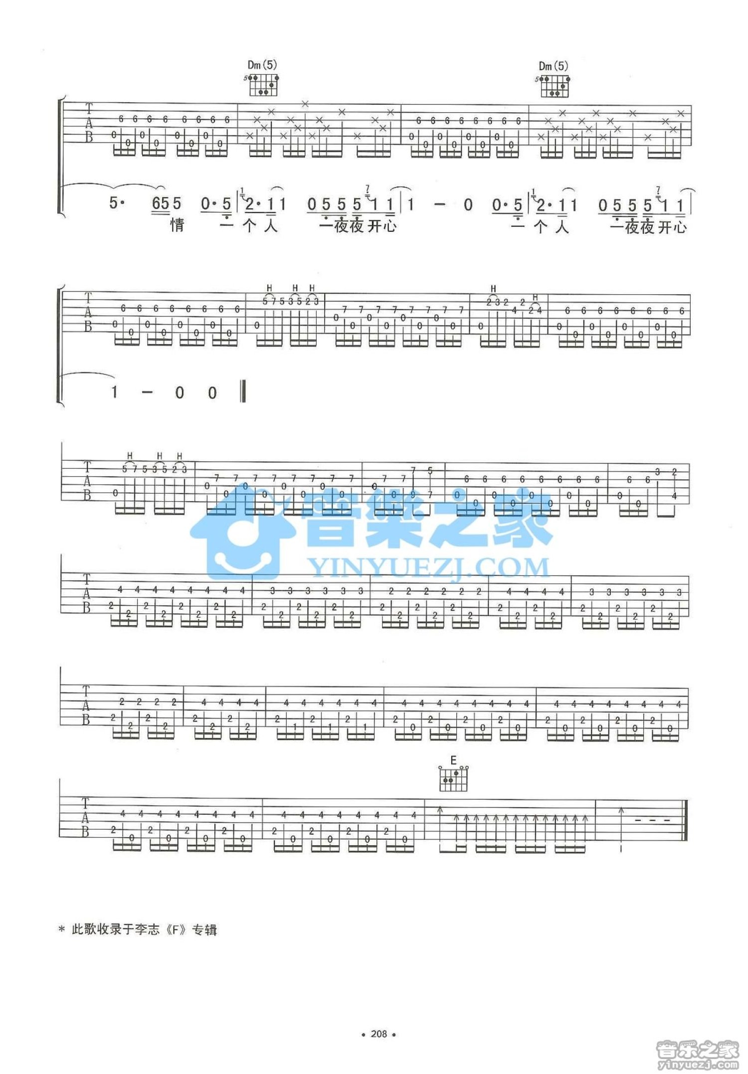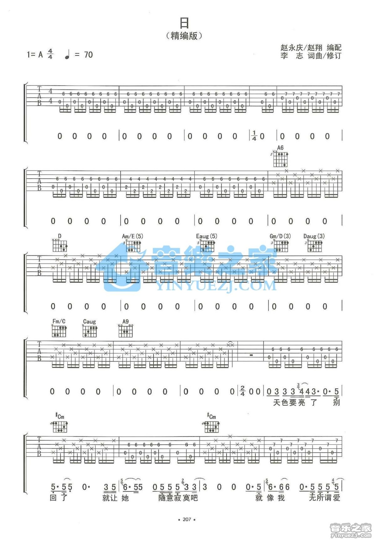 曲谱介绍: A调版李志《日》吉他弹唱六线谱