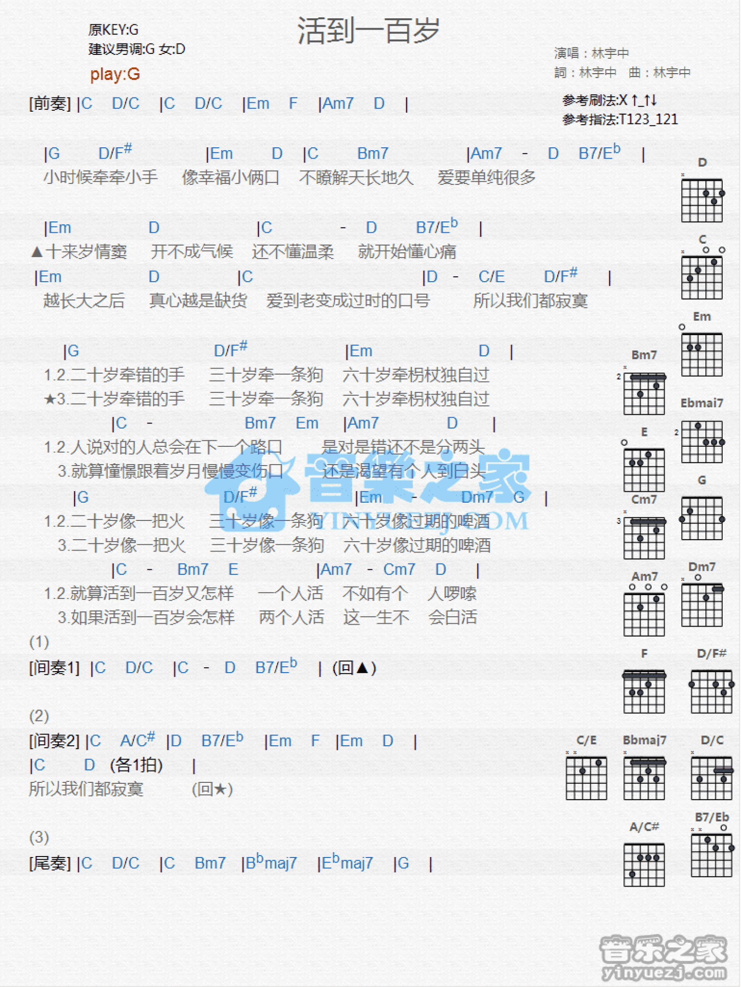 活到一百岁吉他谱 - 林宇中 - G调吉他弹唱谱 - 和弦谱