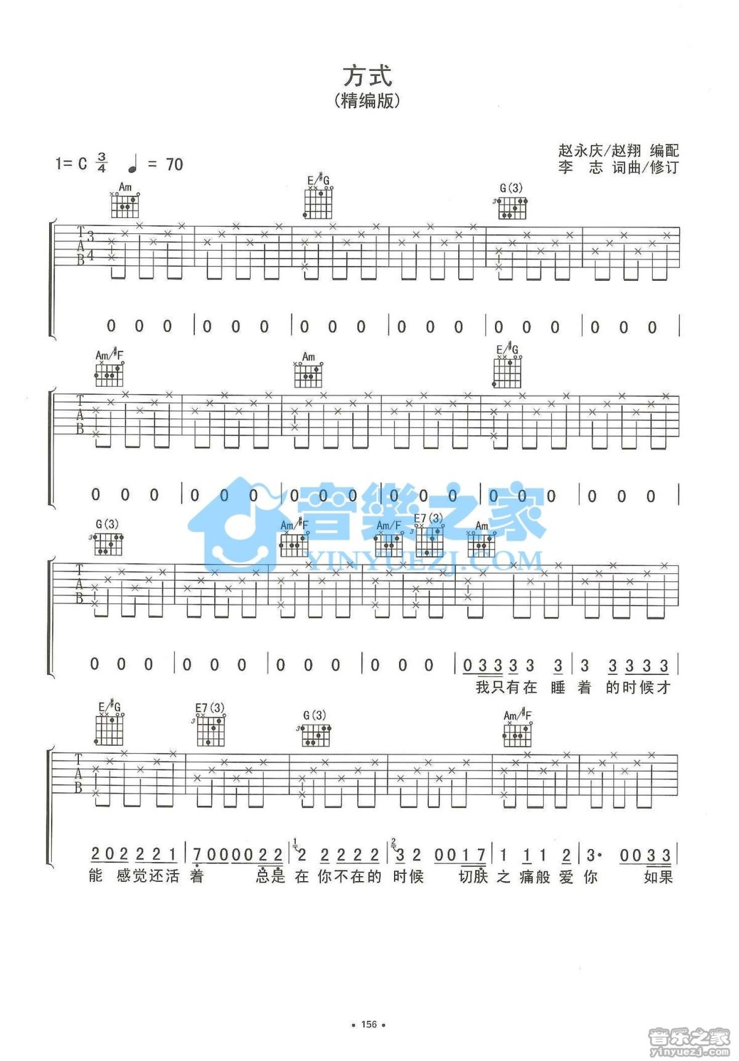 曲谱介绍: C调版 李志《方式》吉他弹唱六线谱