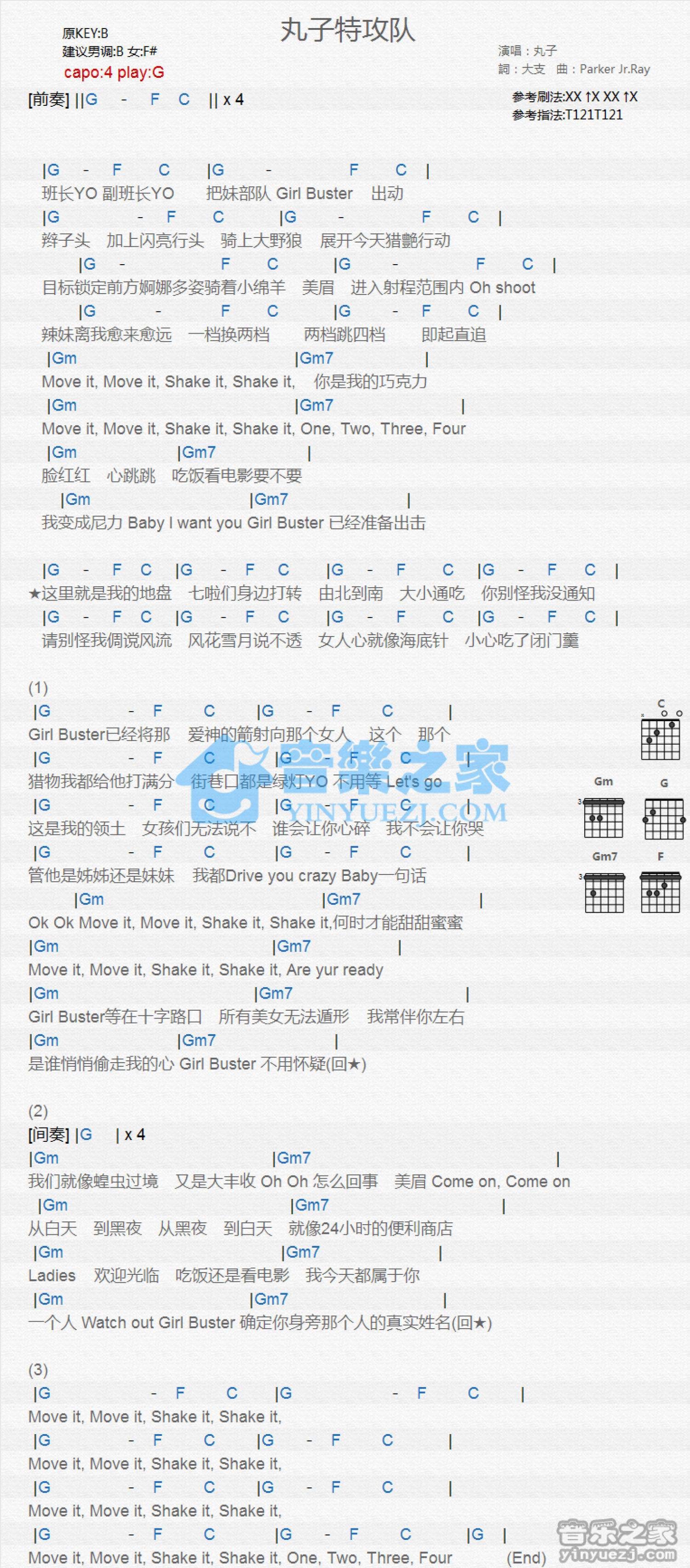 曲谱介绍: G调版 丸子《丸子特攻队》吉他和弦弹唱谱