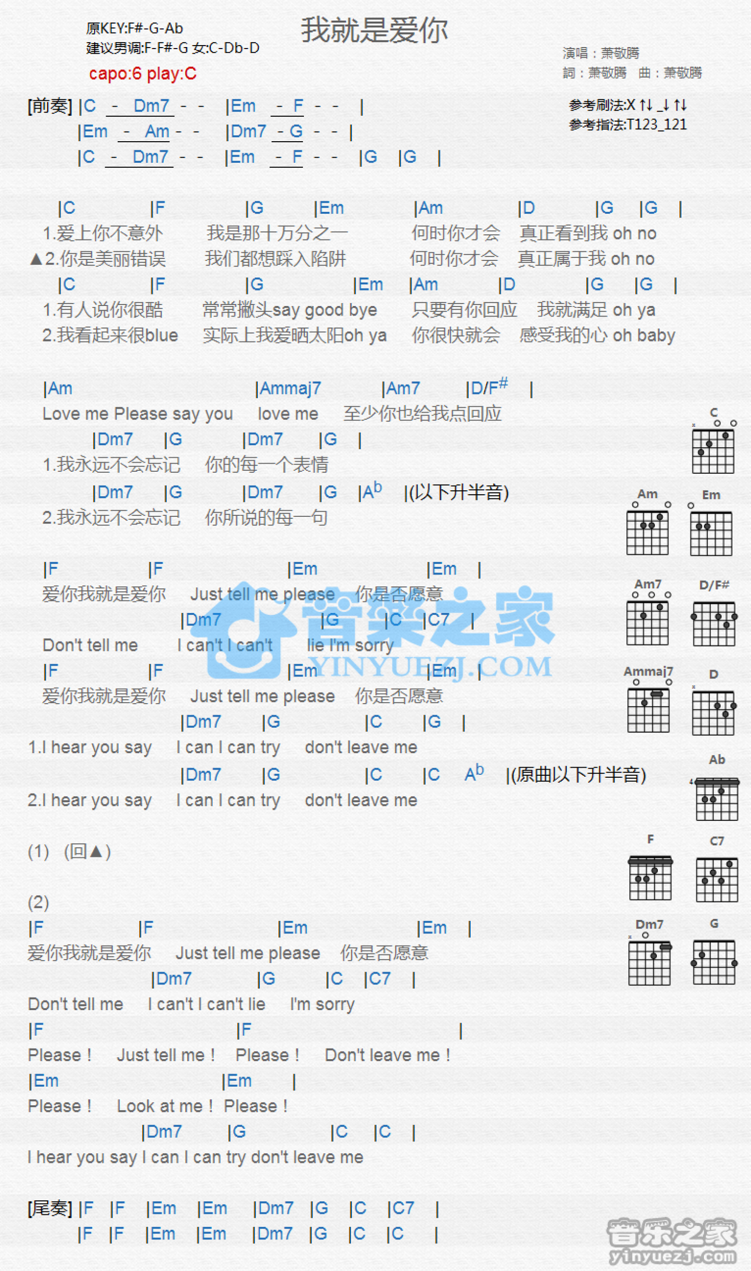 我就是爱你吉他谱 - 萧敬腾 - C调吉他弹唱谱 - 和弦谱