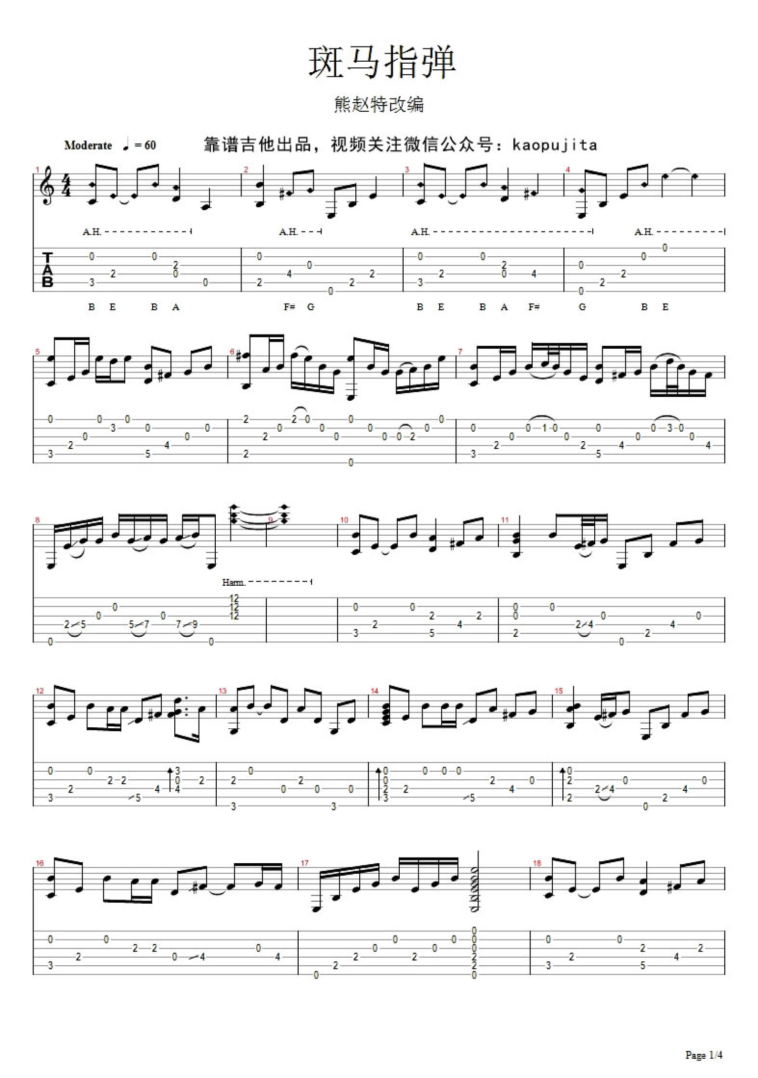 曲谱介绍: 斑马斑马指弹吉他谱,吉他独奏谱图片格式,宋冬野的经典民谣歌曲《斑马斑马》指弹改编版吉他谱,由90后的帅哥老师熊赵特送上,由靠谱吉他出品。